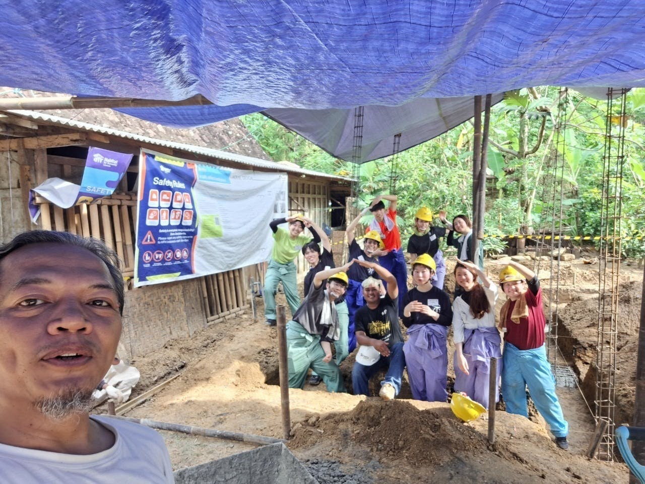 ワーク2日目は昨日作成した地盤や骨組みにセメントを流し込む作業をメインに行いました!現地のコーディネーターやホームオーナーを含んでバケツリレーを行い絆を深めることができました!