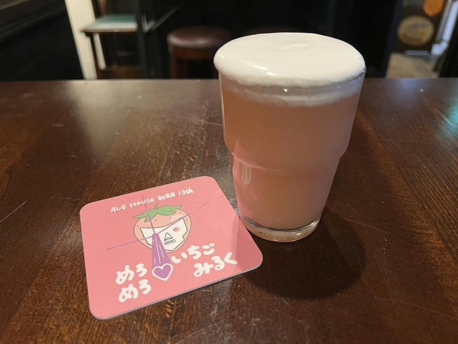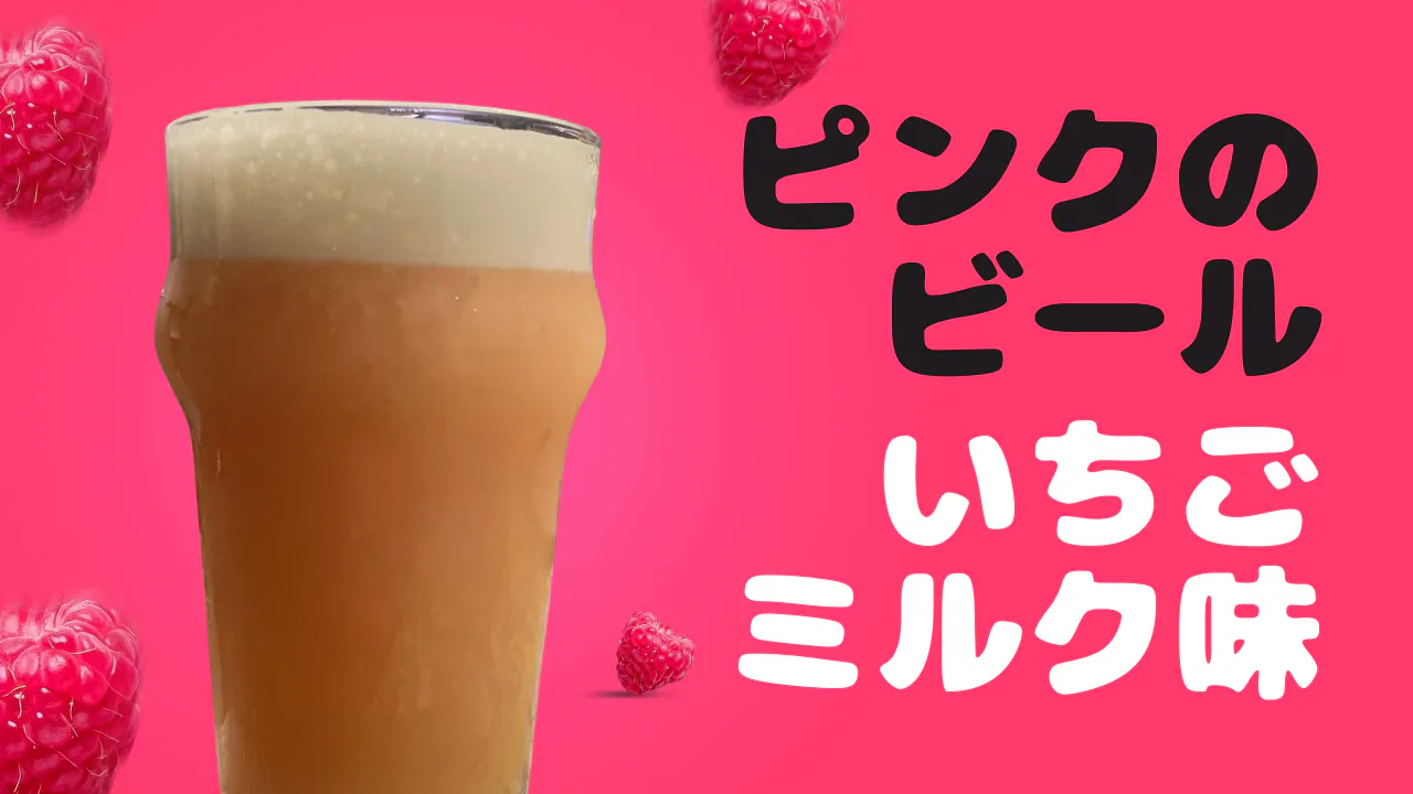 ピンクのビール:いちごミルク風味のビール。クラフトビールの新たな挑戦として、しっかりといちごミルクーでありながらも、甘すぎず重たすぎない、おかわりできちゃうくらいの味わいに仕上げました。「ビールといちごミルクなんて合うの?」と思うかもしれませんが、実際に飲んでみると「意外とアリ!」と思える不思議なバランスのビールです。