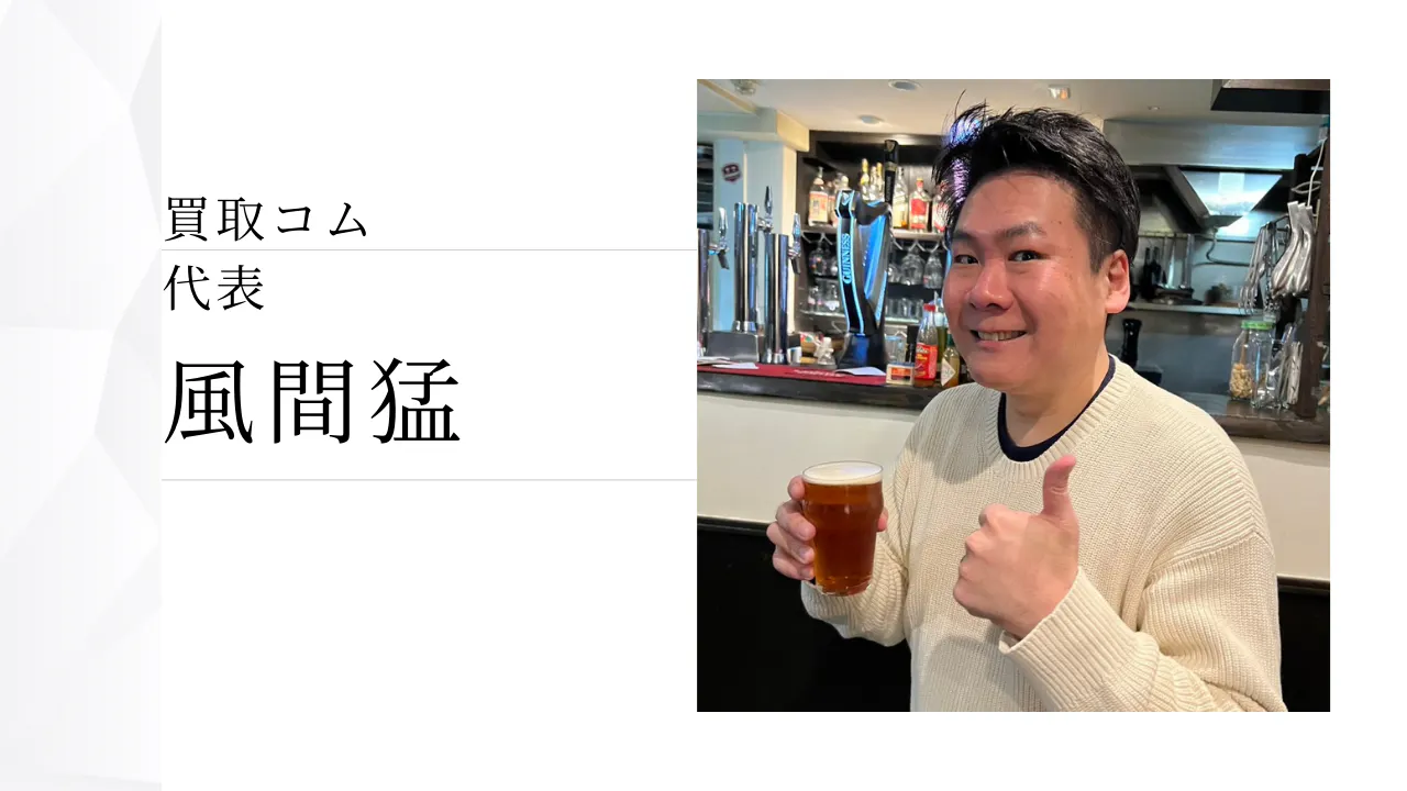 私は風間猛と申します。普段は買取特化リサイクルショップ「買取コム」の代表として活動しています。