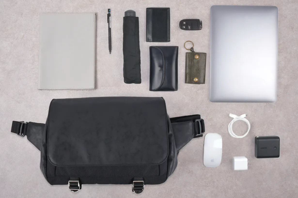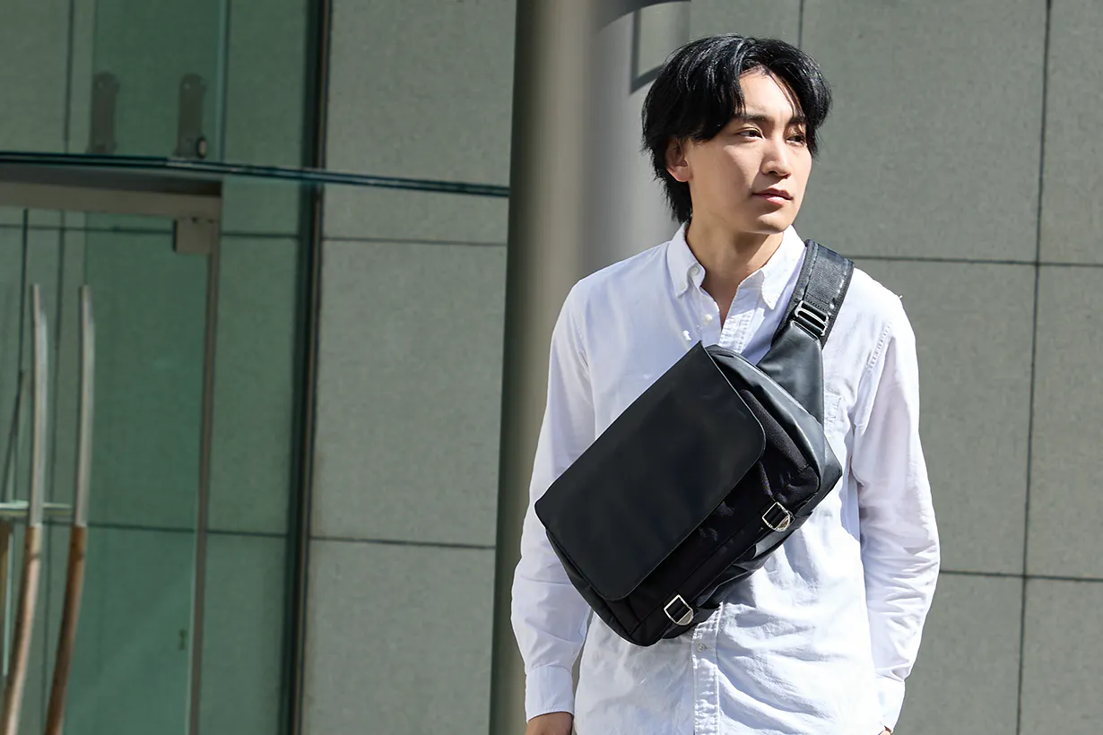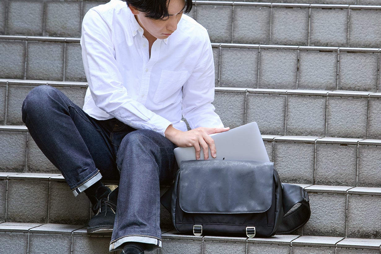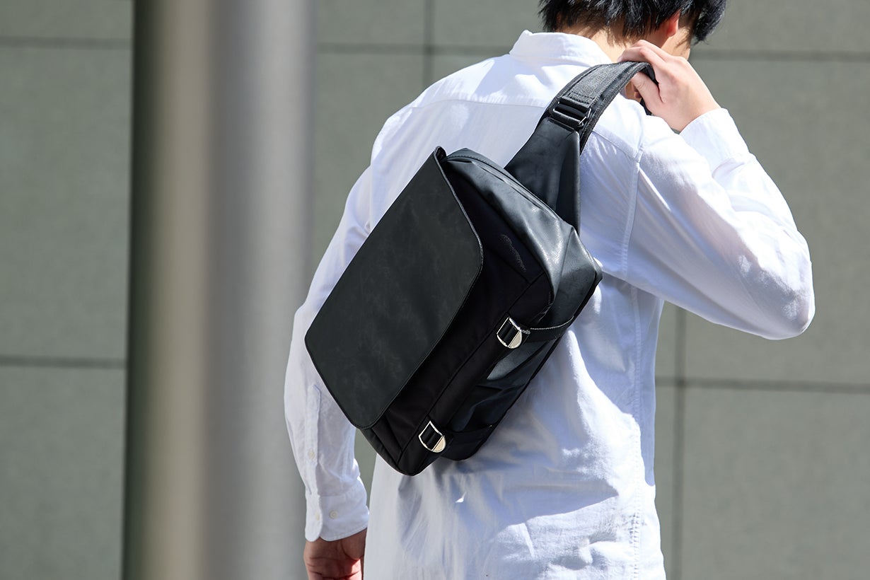 長年綺麗に使える高耐久のスリングバッグで、PCを快適に持ち出せます。