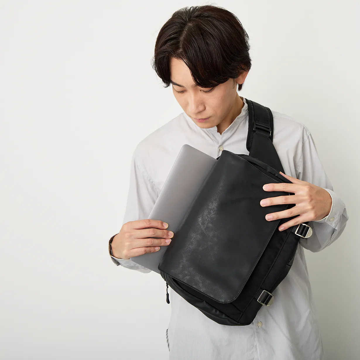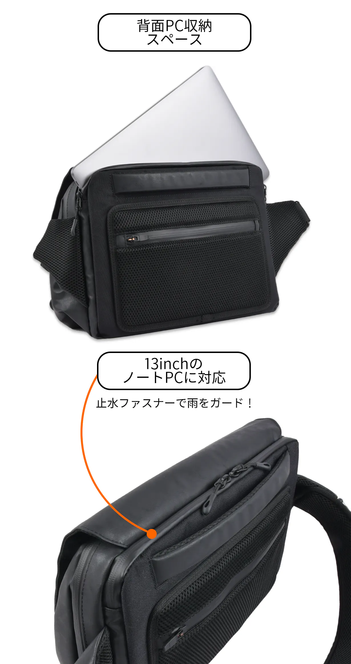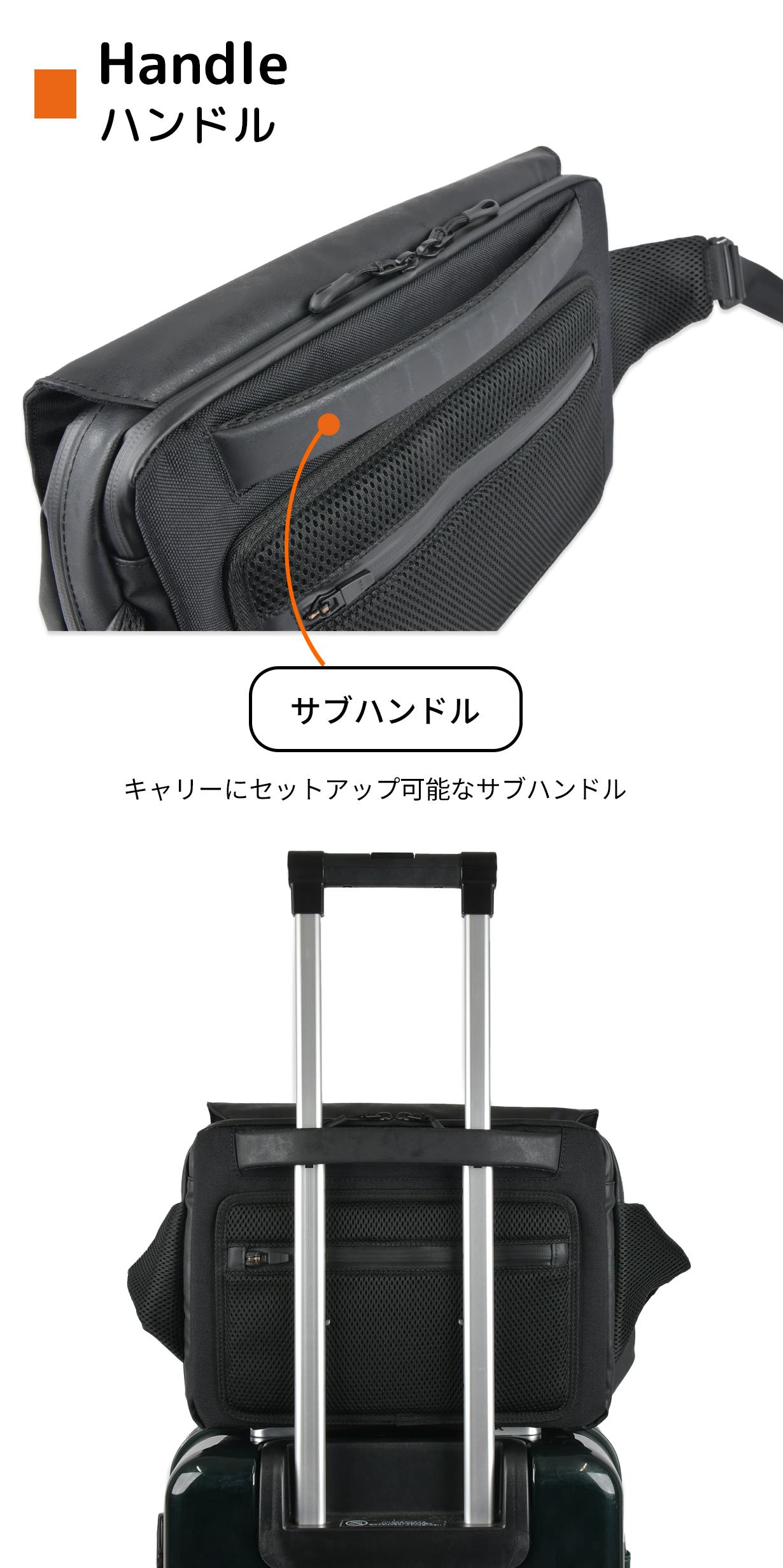 長年綺麗に使える高耐久のスリングバッグで、PCを快適に持ち出せます。