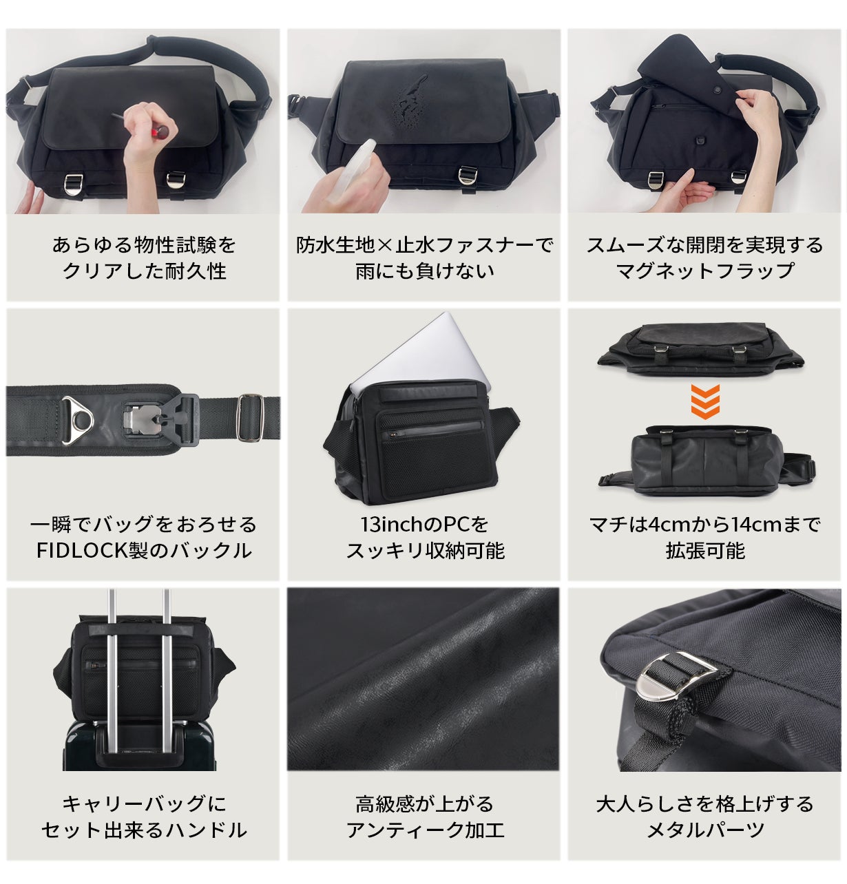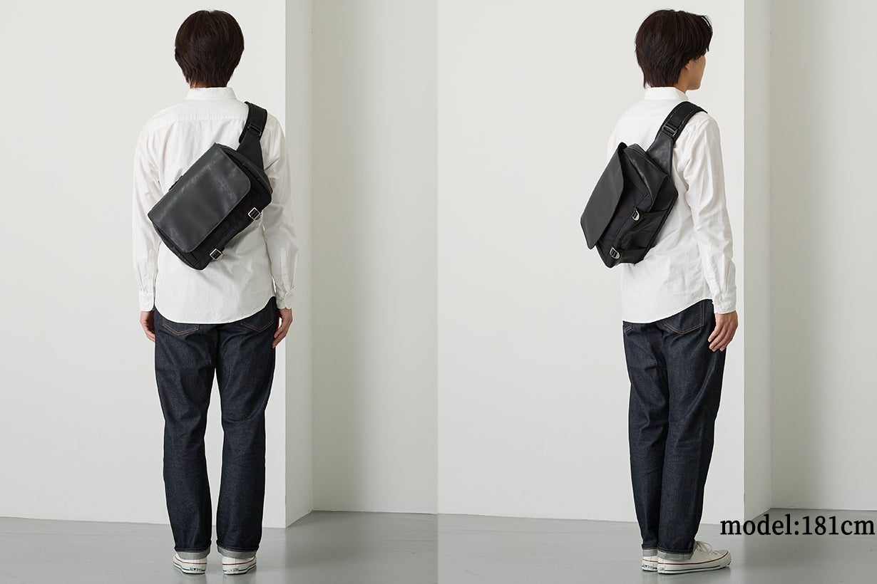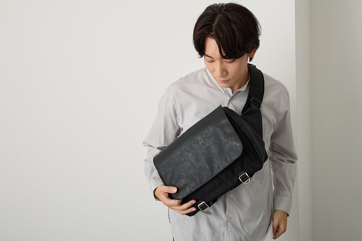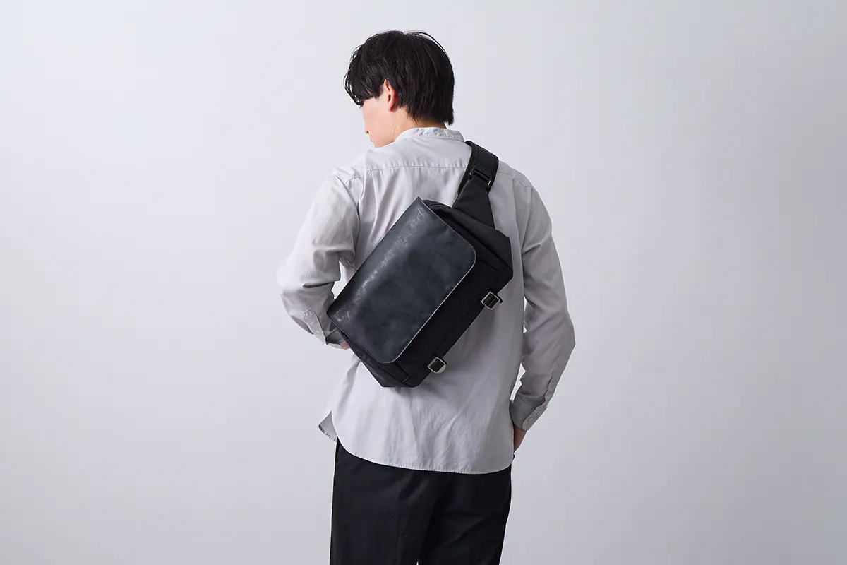 近年ではスリングバッグやショルダーバッグで通勤をするのも珍しいことではなくなりましたが、高耐久素材由来の綺麗なまま使える耐久性と、デューロンに施したアンティーク加工による長く持続する高級感が備わったスリングバッグが、ビジネスシーンも含めて皆さまの毎日の相棒になってくれると信じています。