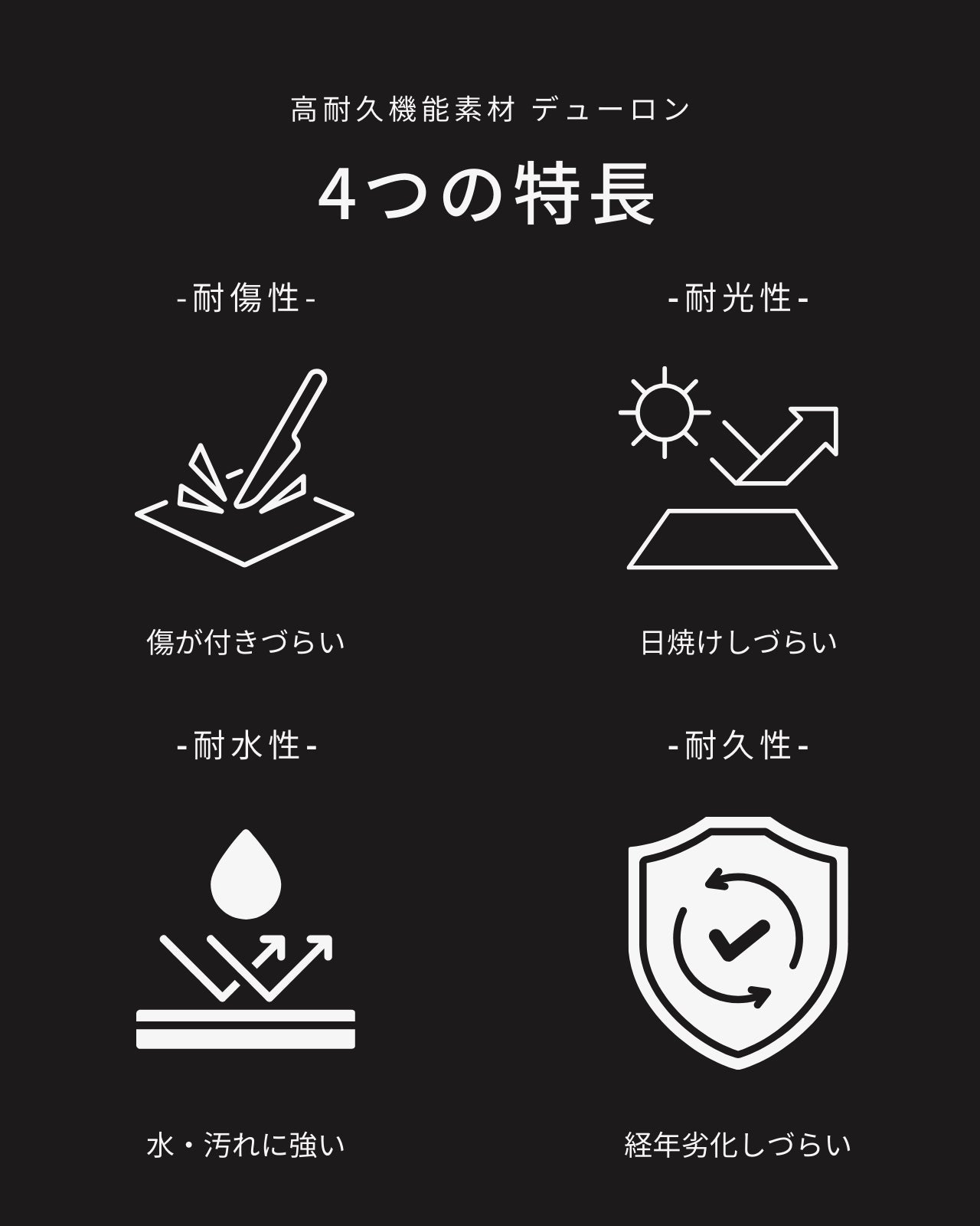 圧倒的耐久性とレザー調のアンティーク加工により高級感も長くつづく機能的な新素材をぜひ体感してみてください。