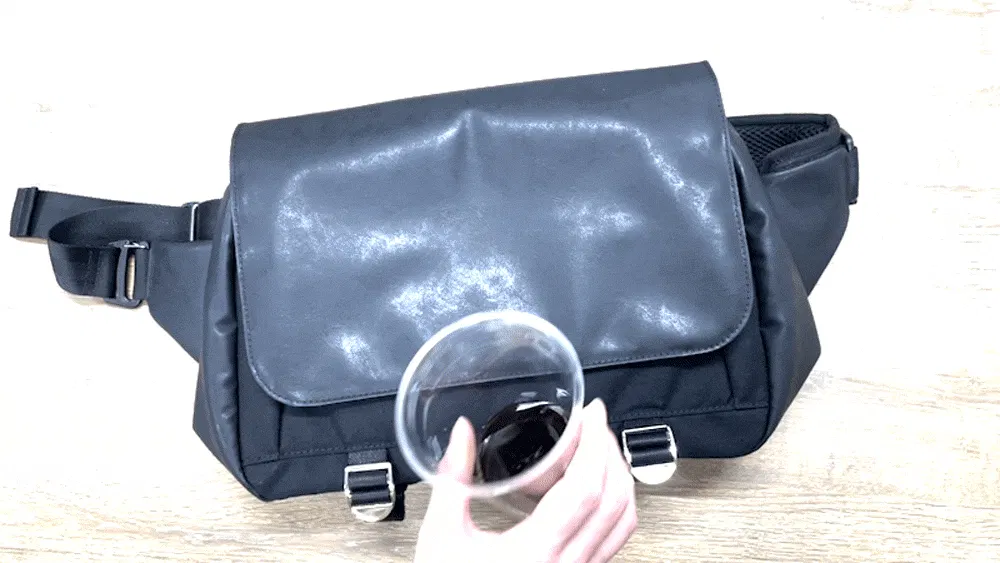 ご覧のように、撥水性が高く水を弾く素材なので、雨の日でも安心してお使いいただくことができます。