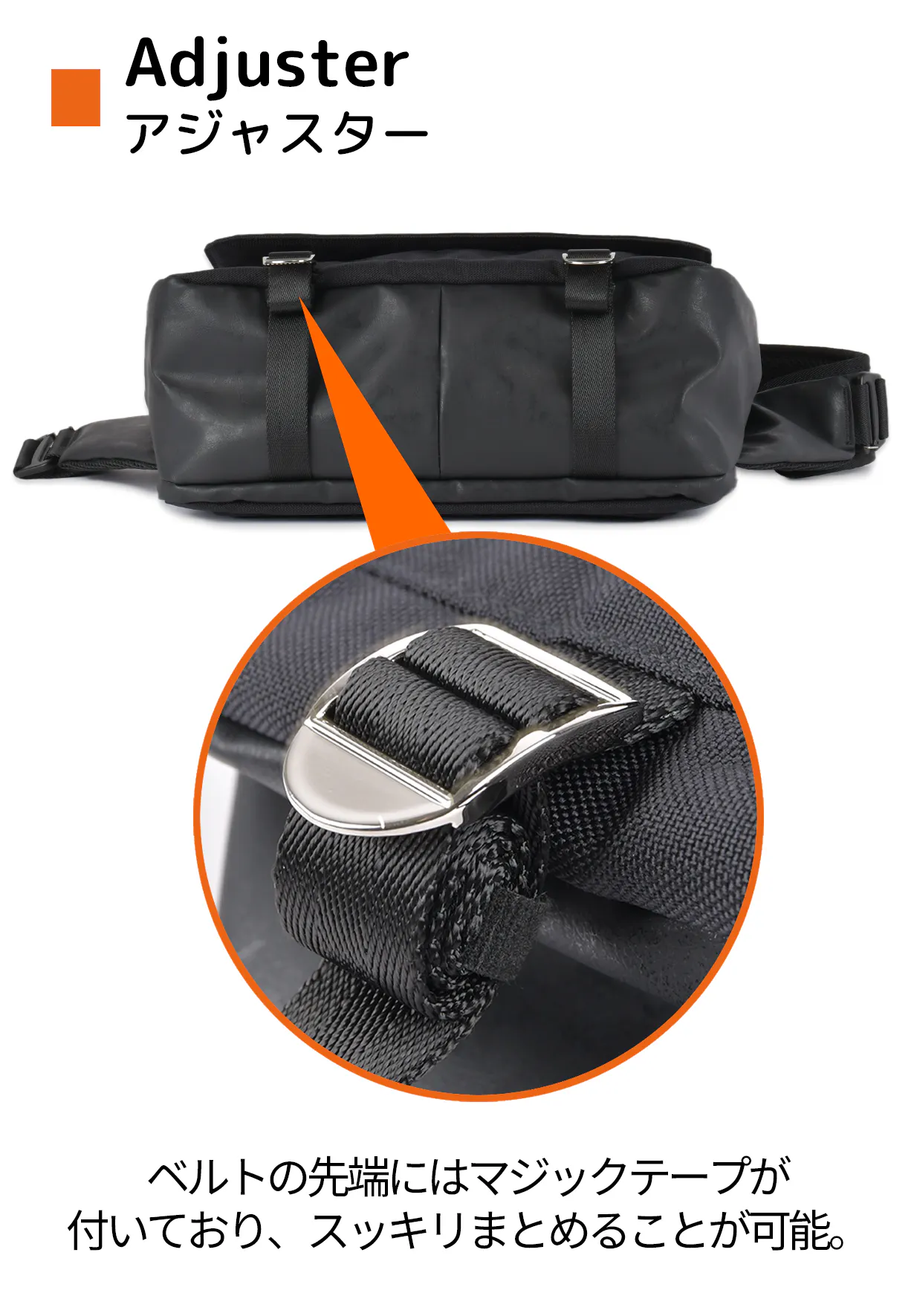 マチ幅はベルトでサイズ調整ができる仕様です。