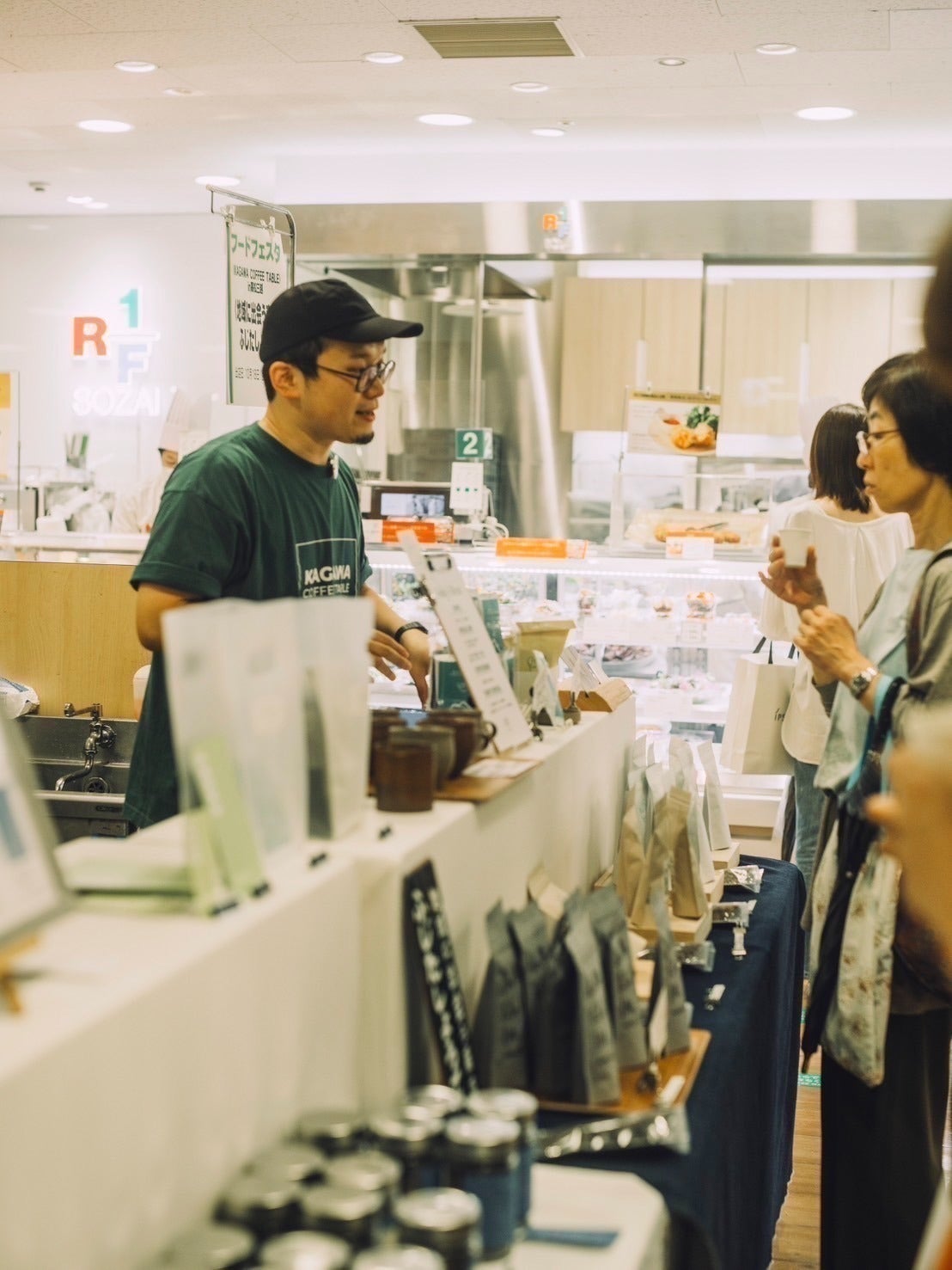 コーヒーフェスで各店舗のコーヒーを注いで