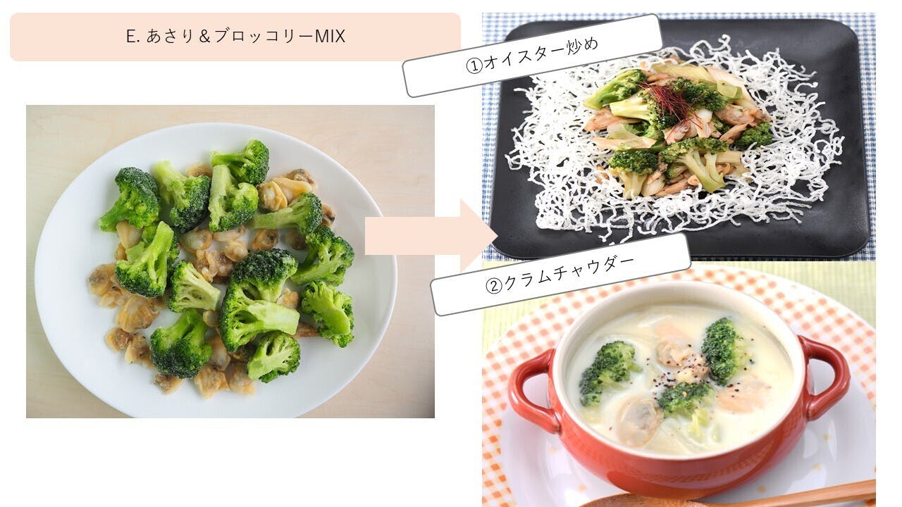 以下のA~Hの8商品からなります。(レシピ集から調理例2品載せています!)
