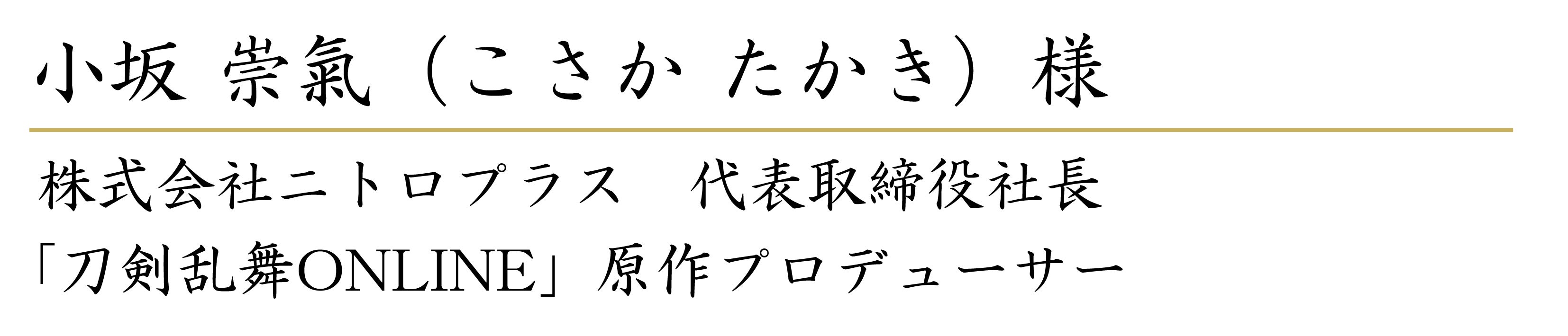 ゲームやアニメを制作している株式会社ニトロプラスの小坂 崇氣(こさか たかき)と申します。私は刀剣を題材にした「刀剣乱舞(とうけんらんぶ)ONLINE」というゲームの原作・プロデューサーをしております。