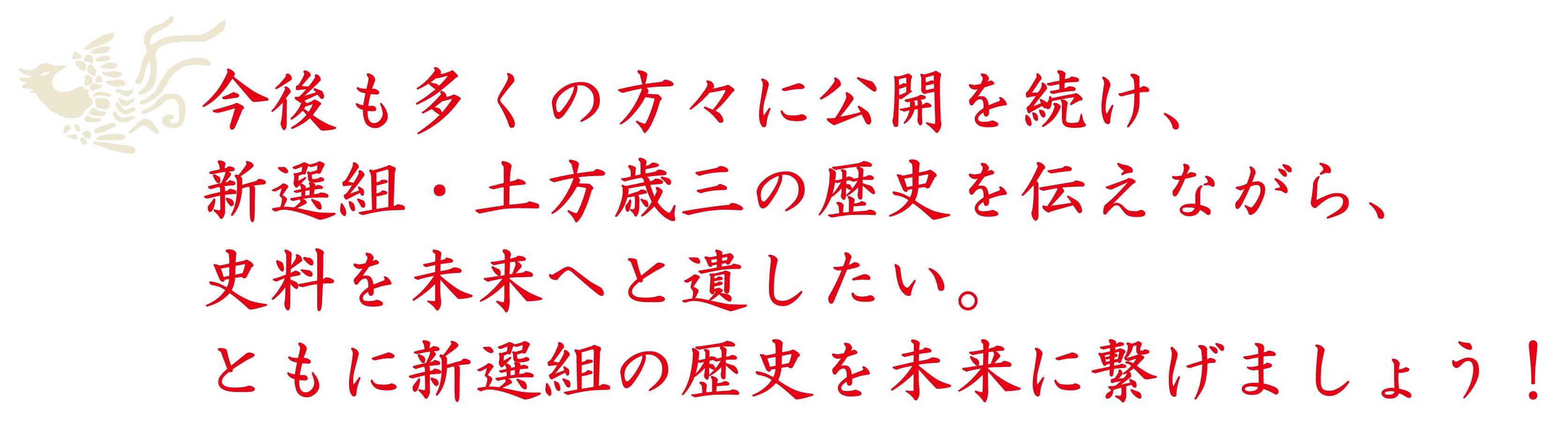 複製を活用しながら史料を広く公開し、新選組研究の発展にも協力しつつ、歴史を未来につなぎます。