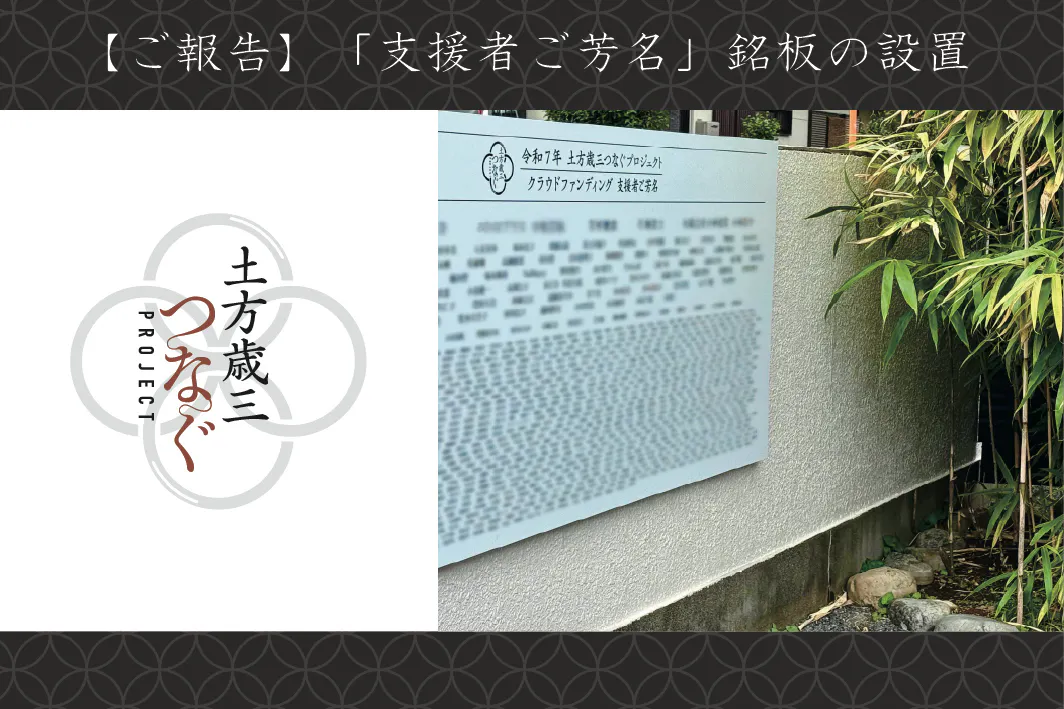 このたび、「土方歳三つなぐプロジェクト クラウドファンディング 支援者ご芳名」銘板の設置作業が無事完了いたしました。