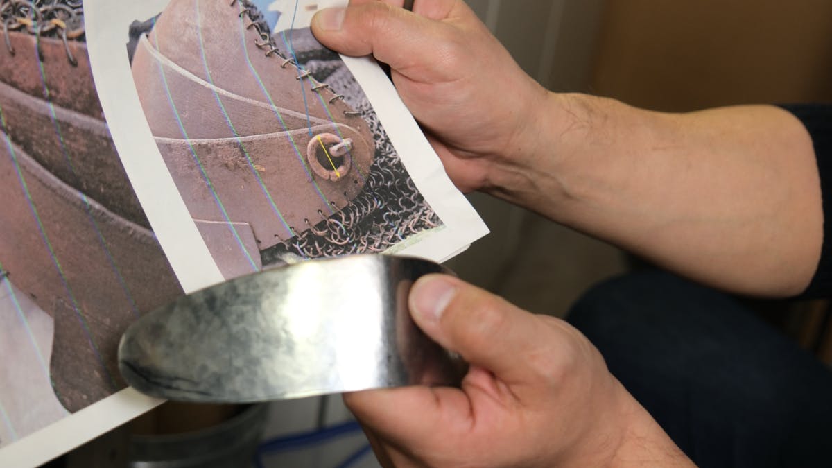 その際、鎖帷子の複製制作において鉢金部分を担当されている鍛金家・相原健作さんと、制作全体を統括されている西岡文夫さんより、当時の技法や構造的特徴について、貴重なお話の数々を伺いました。