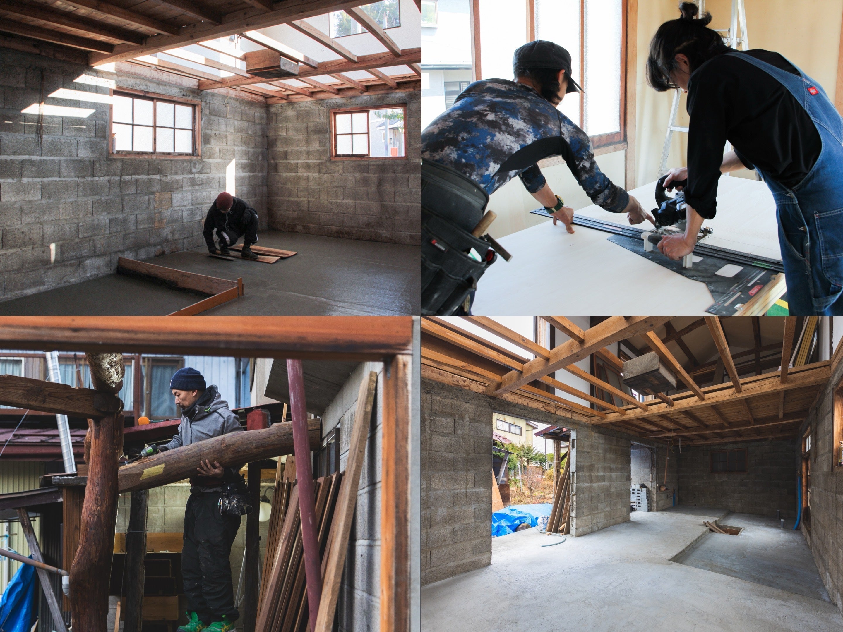 地元の大工さん、現場監督には地元工務店のツチクラ住建さんに入っていただき、コツコツと制作をしました。