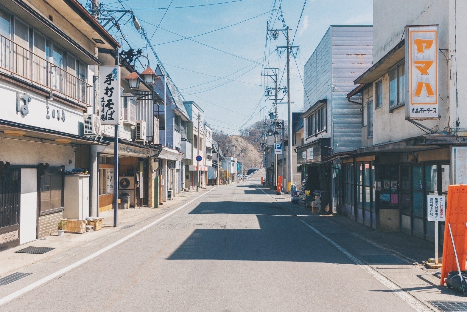 駅を出てすぐにある栄町商店街には、昔から続く食堂や床屋、閉店してしまった宿や商店、新しく人が入り営業する古着屋や洋裁室、塾などがある通りです。店主彩花はこの通りでシェアハウスと旅館の運営、真也は「デザインスタジオ -Yueni-」を構えています。