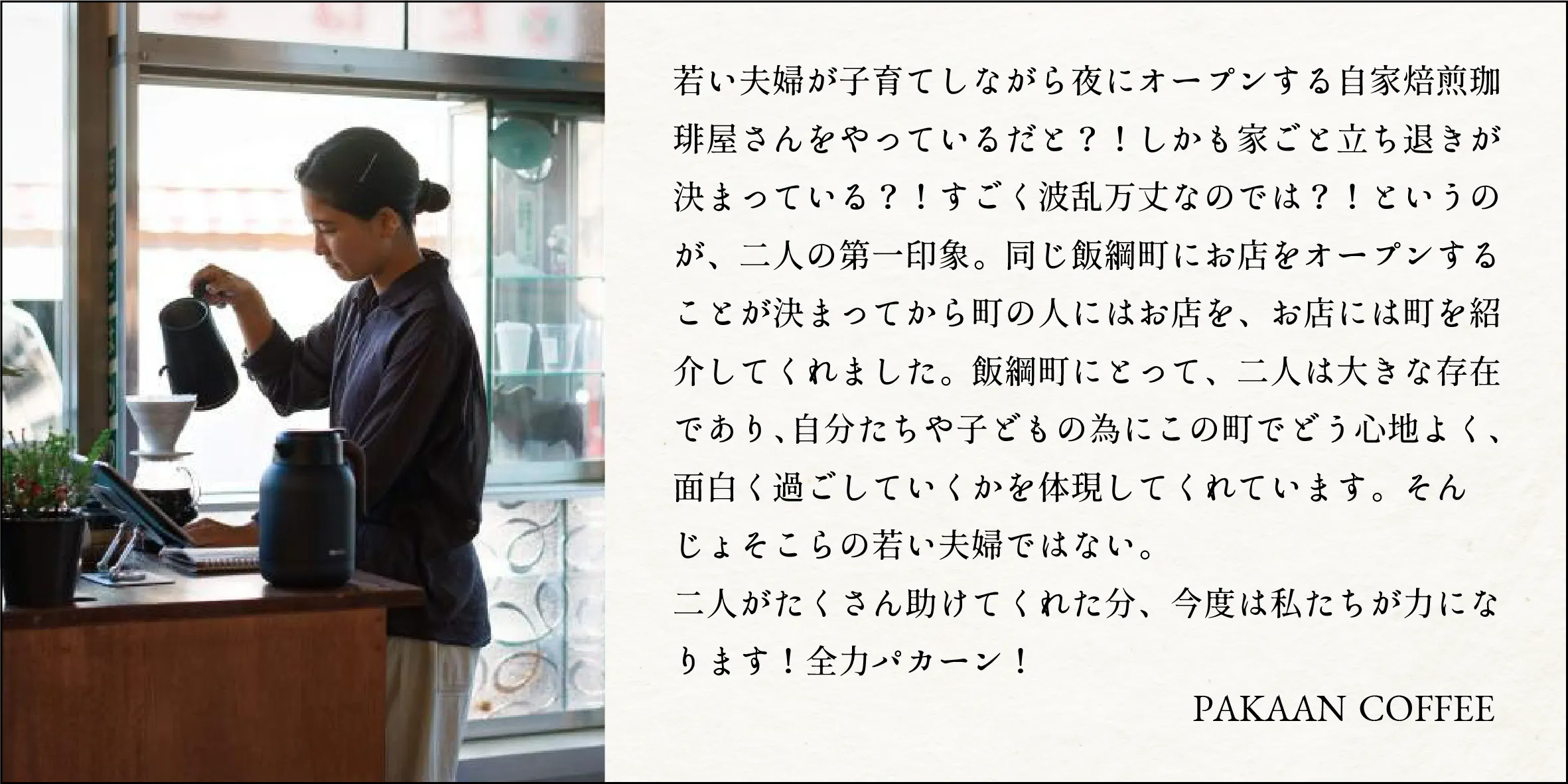 長野県北部に位置する飯綱町に、2024年4月から『消灯珈琲』というお店を開店しました、店主の中嶋彩花と中嶋真也です。