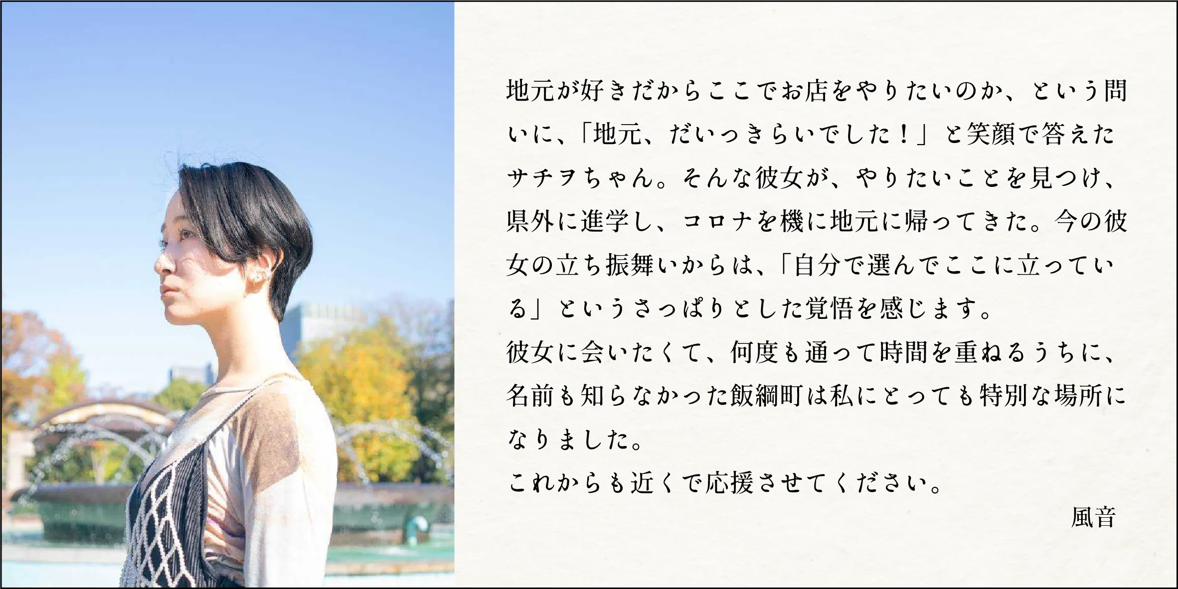 「地元には何もないと思っていたけれど、これからは友達に地元何もないって言わない。」