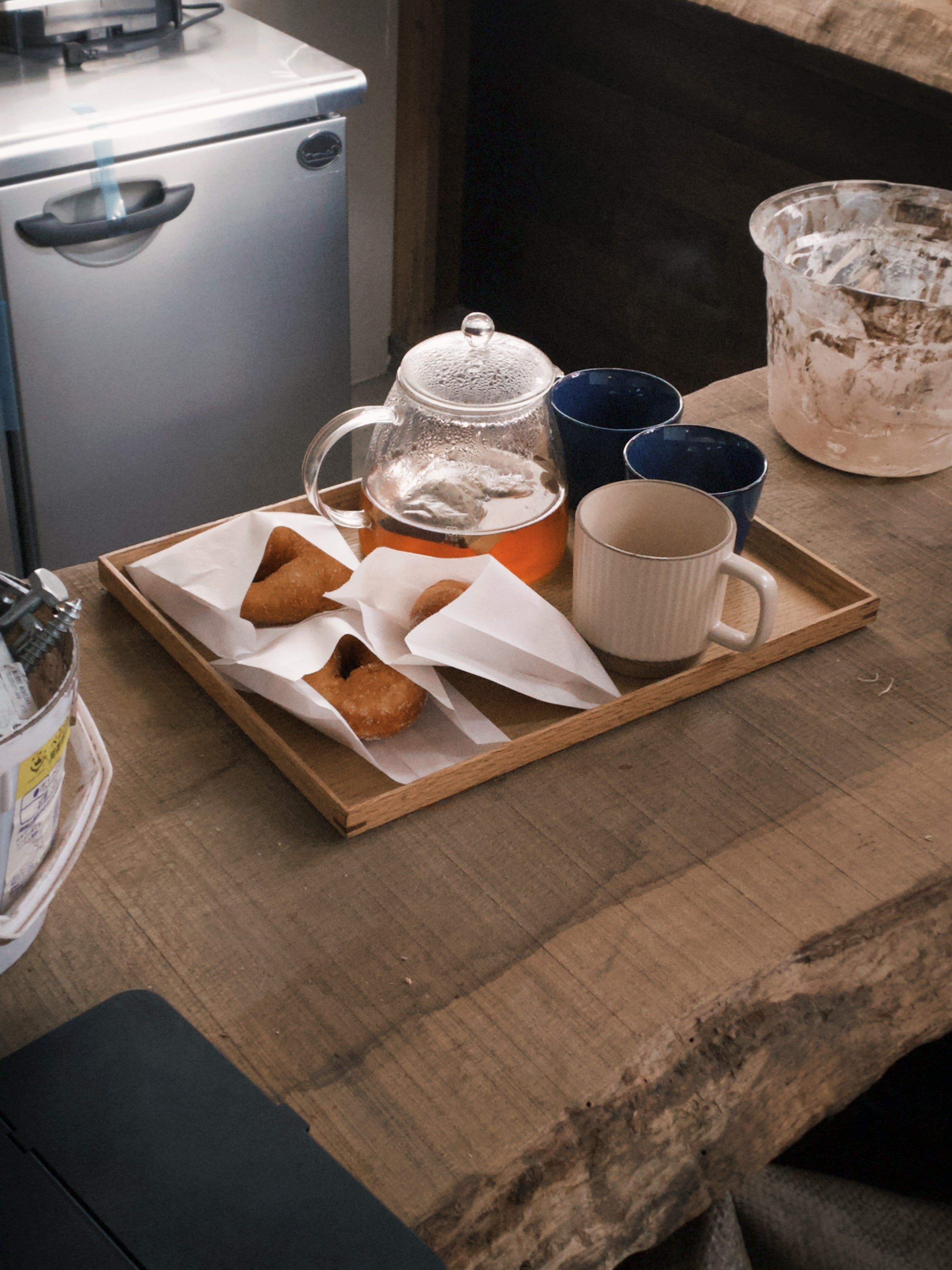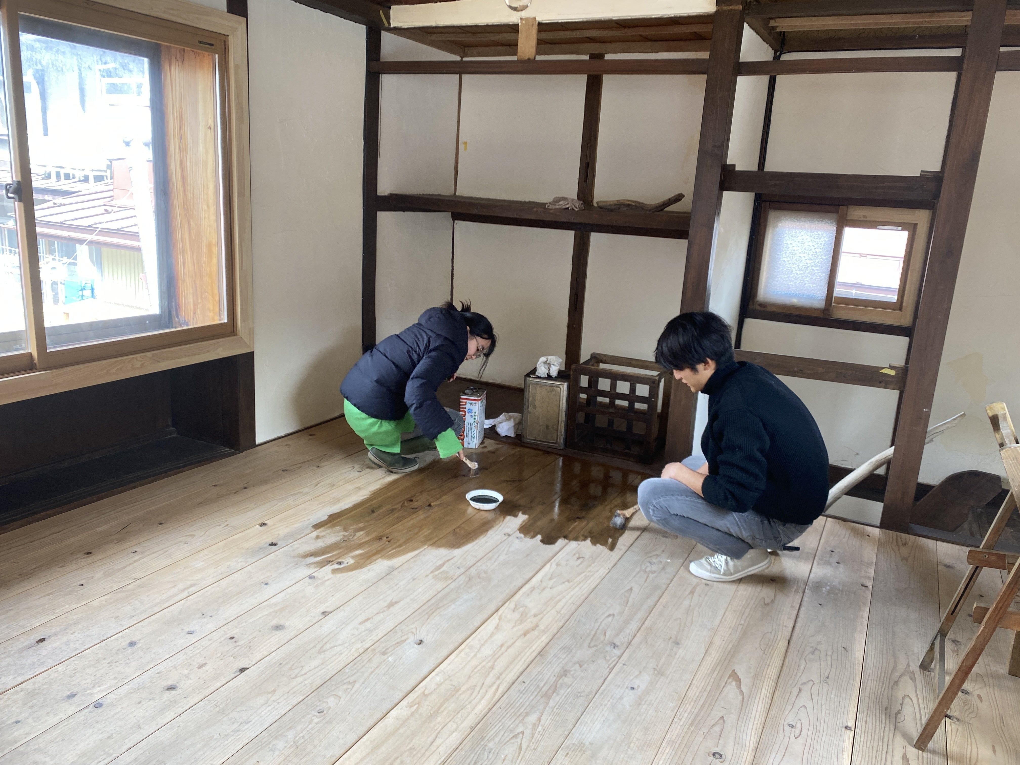 塵まみれになりながらカウンターを削ったり、お掃除を手伝ってもらったり、床塗りを頼んだり、シェアメイトが差し入れを運んでくれたり。