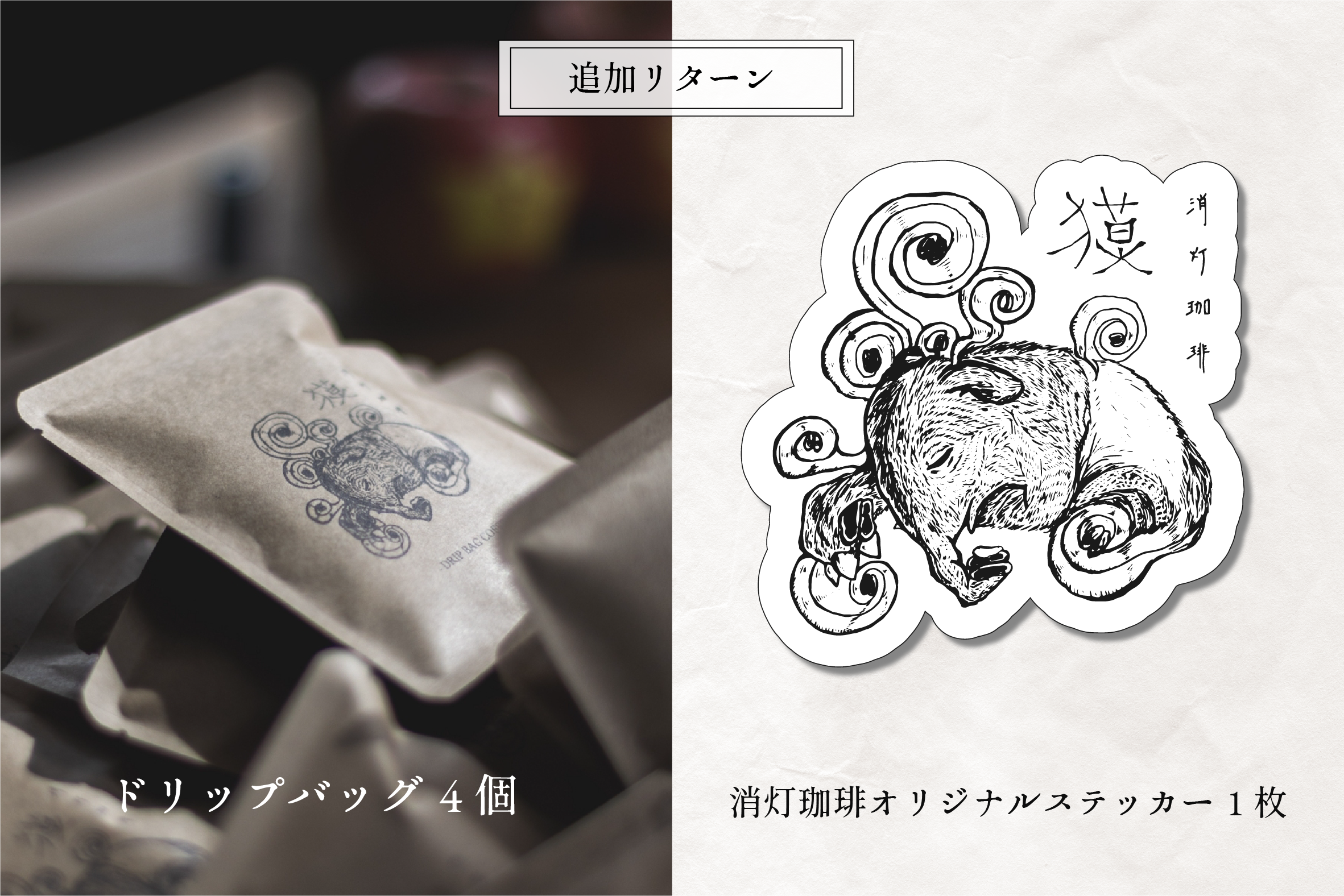 ドリップバッグ数個のセットと、珈琲豆100gセットをリターンに追加しました。