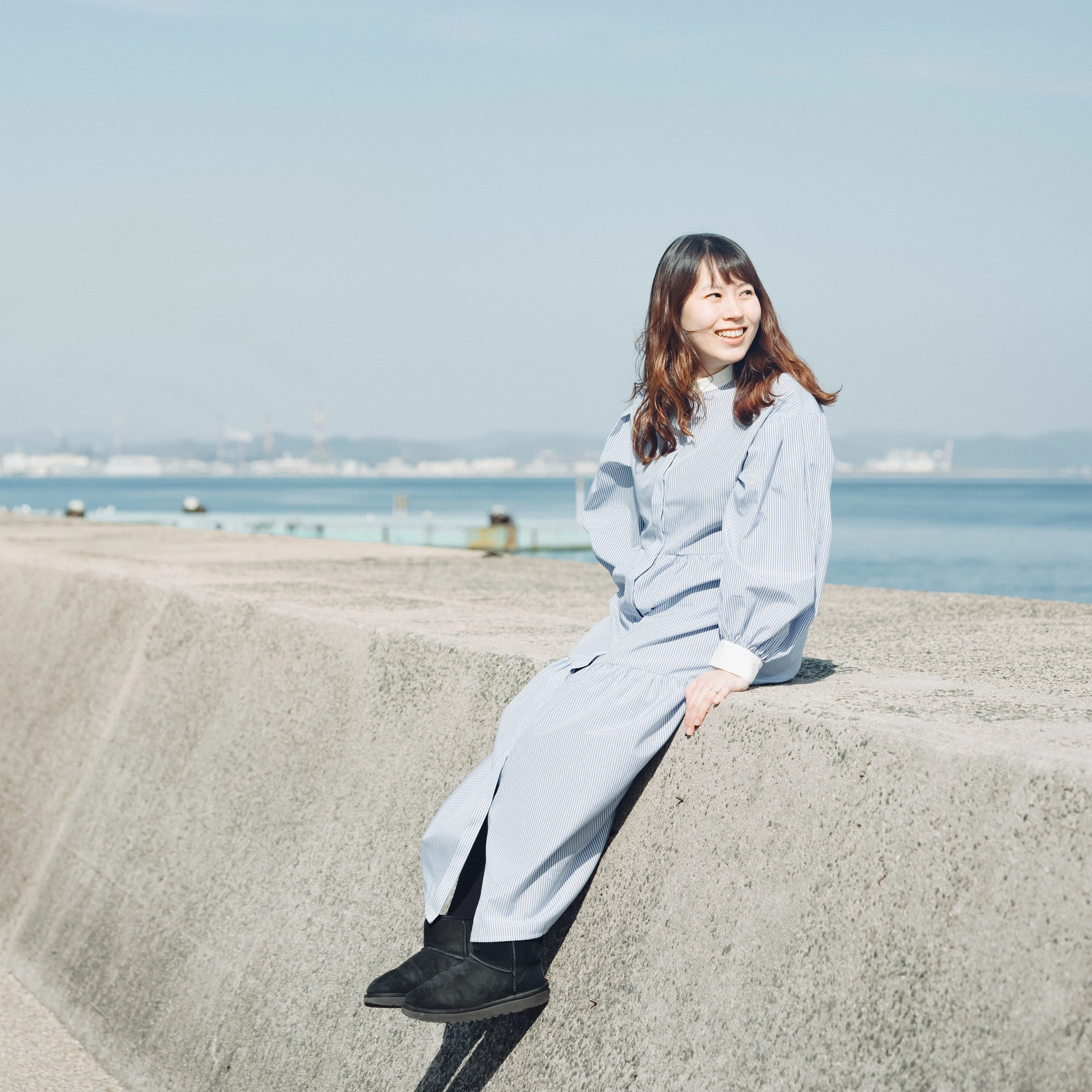 人口3,300人と小さなまちですが、人のつながりや地域コミュニティが濃く残っており、重要伝統的建造物群や日本遺産にも指定されています。昔ながらのまち並みと凪の瀬戸内海を味わえて、散歩が楽しいまちだなと感じる日々です。