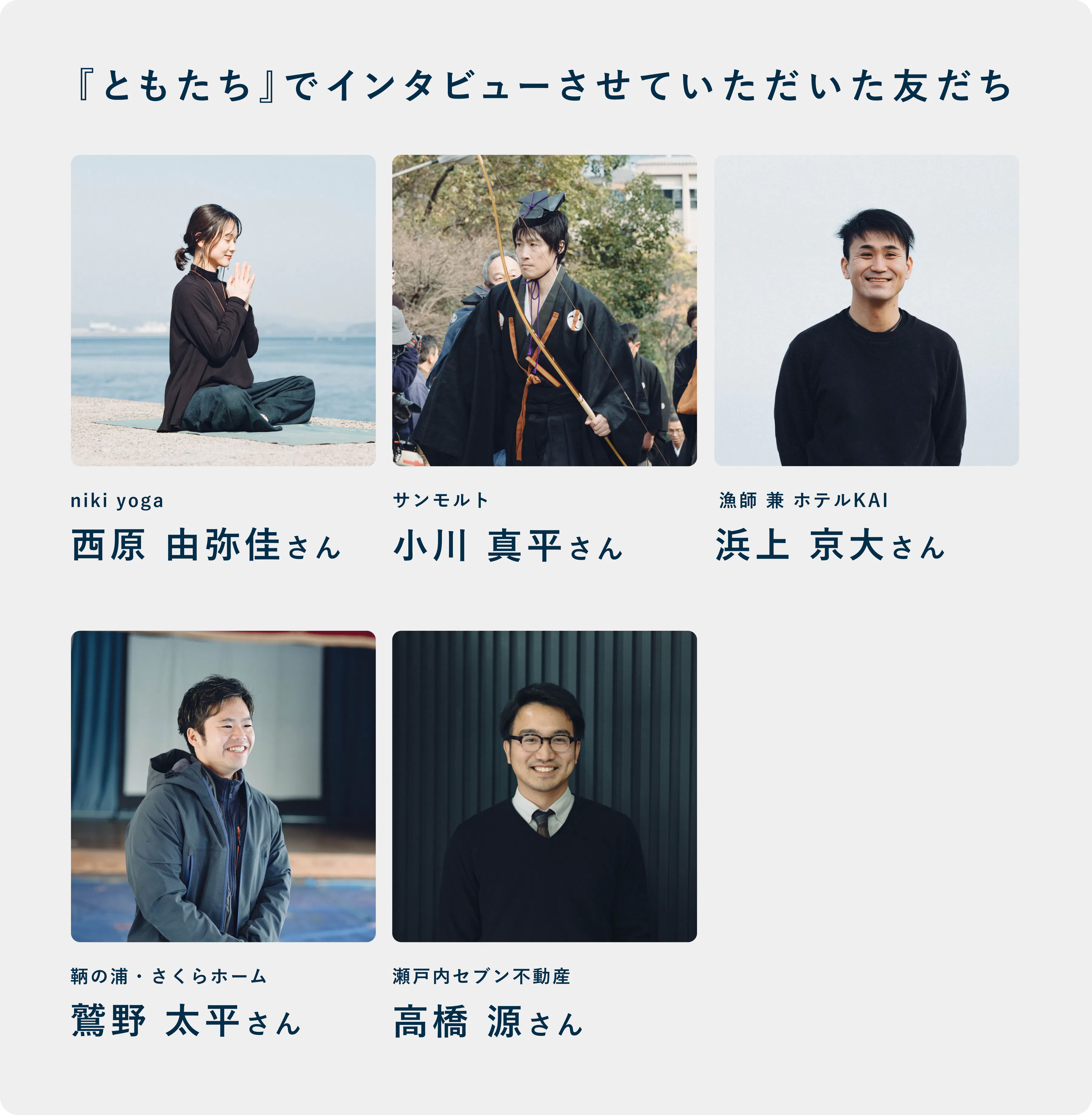 今回の本のタイトルである「ともたち」には、鞆の浦という大きな主語ではなく、鞆の暮らしをひとりひとり丁寧にフォーカスしてあらゆる角度から鞆の浦を探ったことを示しています。