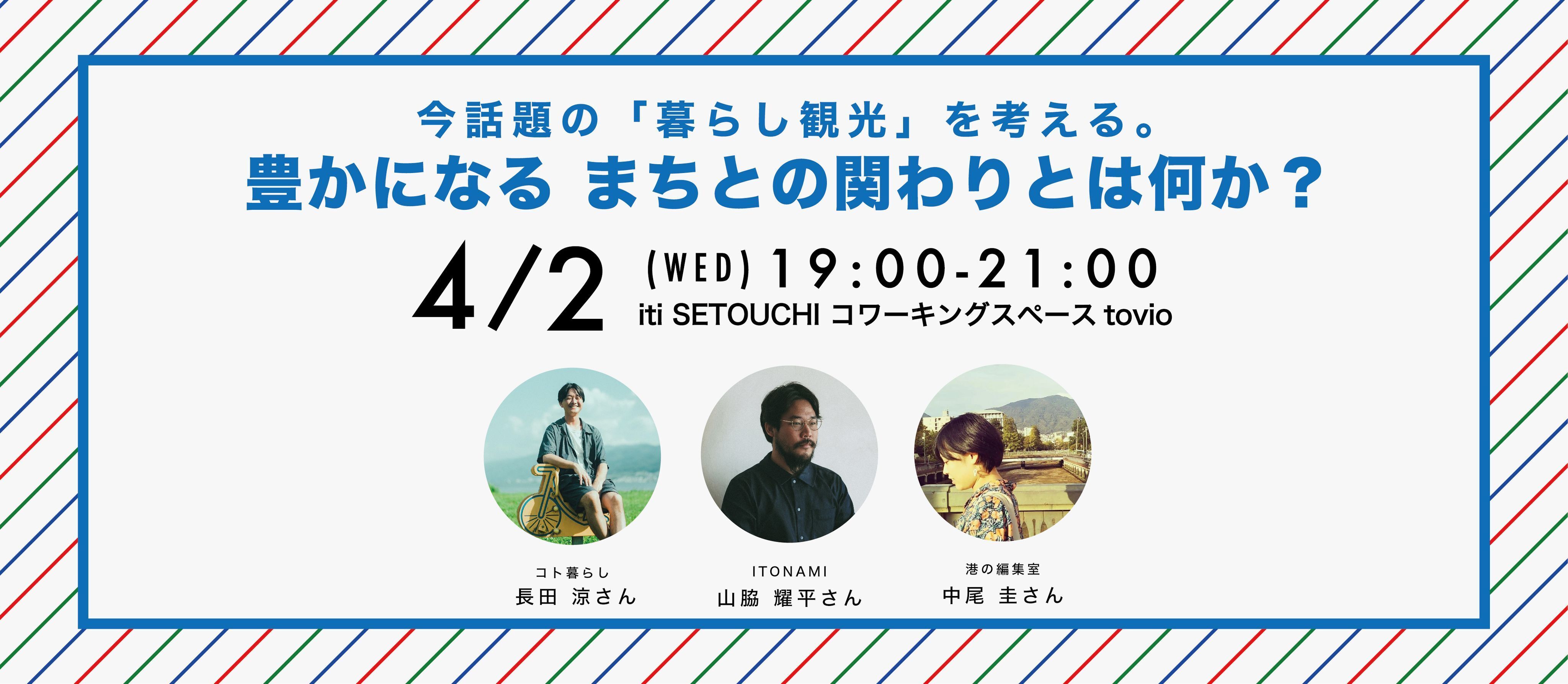 このお二人となら、さらに「暮らし観光」についての解像度が上がる機会になる確信があります。僕自身がとても楽しみなイベントなんです。