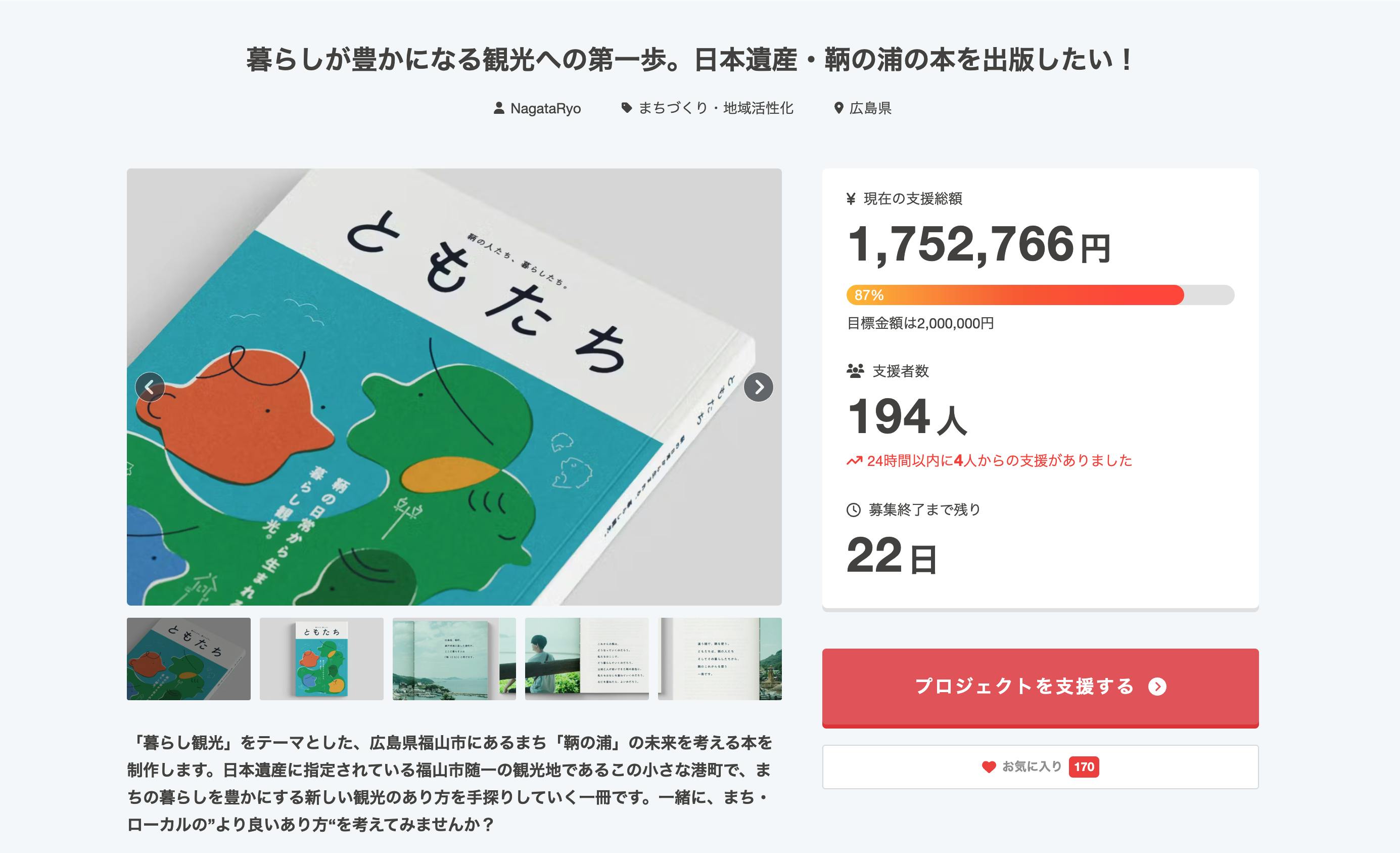 記事では、今回の鞆の浦本「ともたち」の取り組みからクラウドファンディングのことまで綴っていただけて、しっかりとした内容となっています。