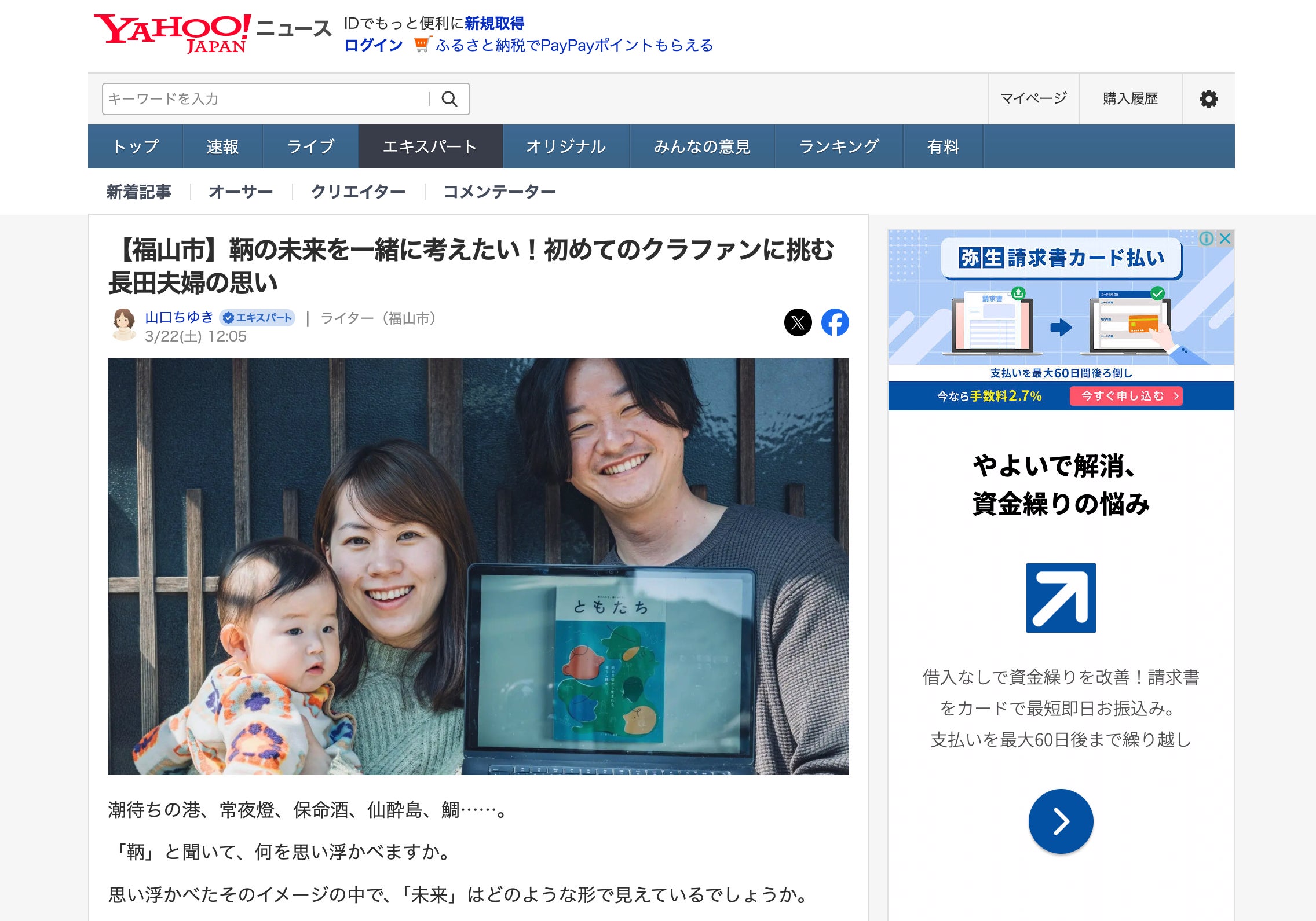 3/22(土)のお昼頃にYahoo!ニュースの記事で、私たちの取り組みを取り上げていただきました!初めてのYahoo!ニュースです。嬉しい!