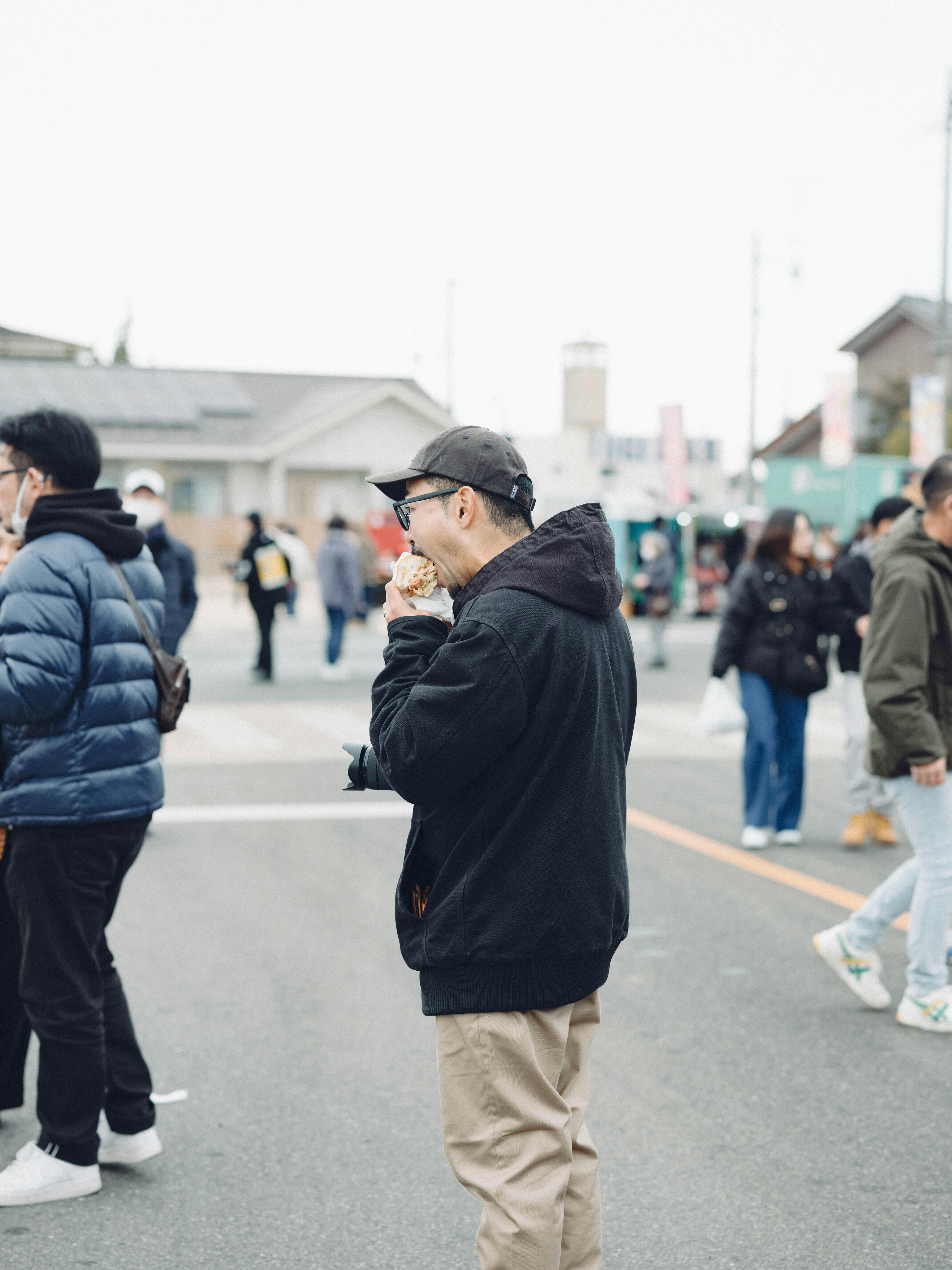 ハンバーガーを頬張る正太郎さん
