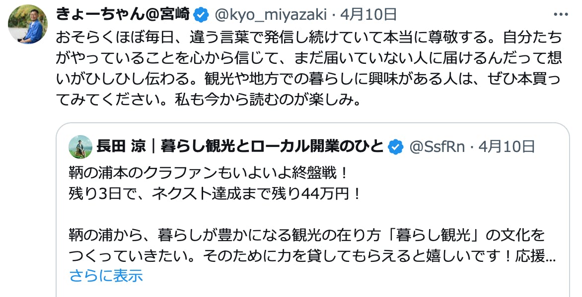 ※SNSなどでプロジェクトページをシェアしてくれたら喜びます!僕のポスト拡散も大歓迎です!
