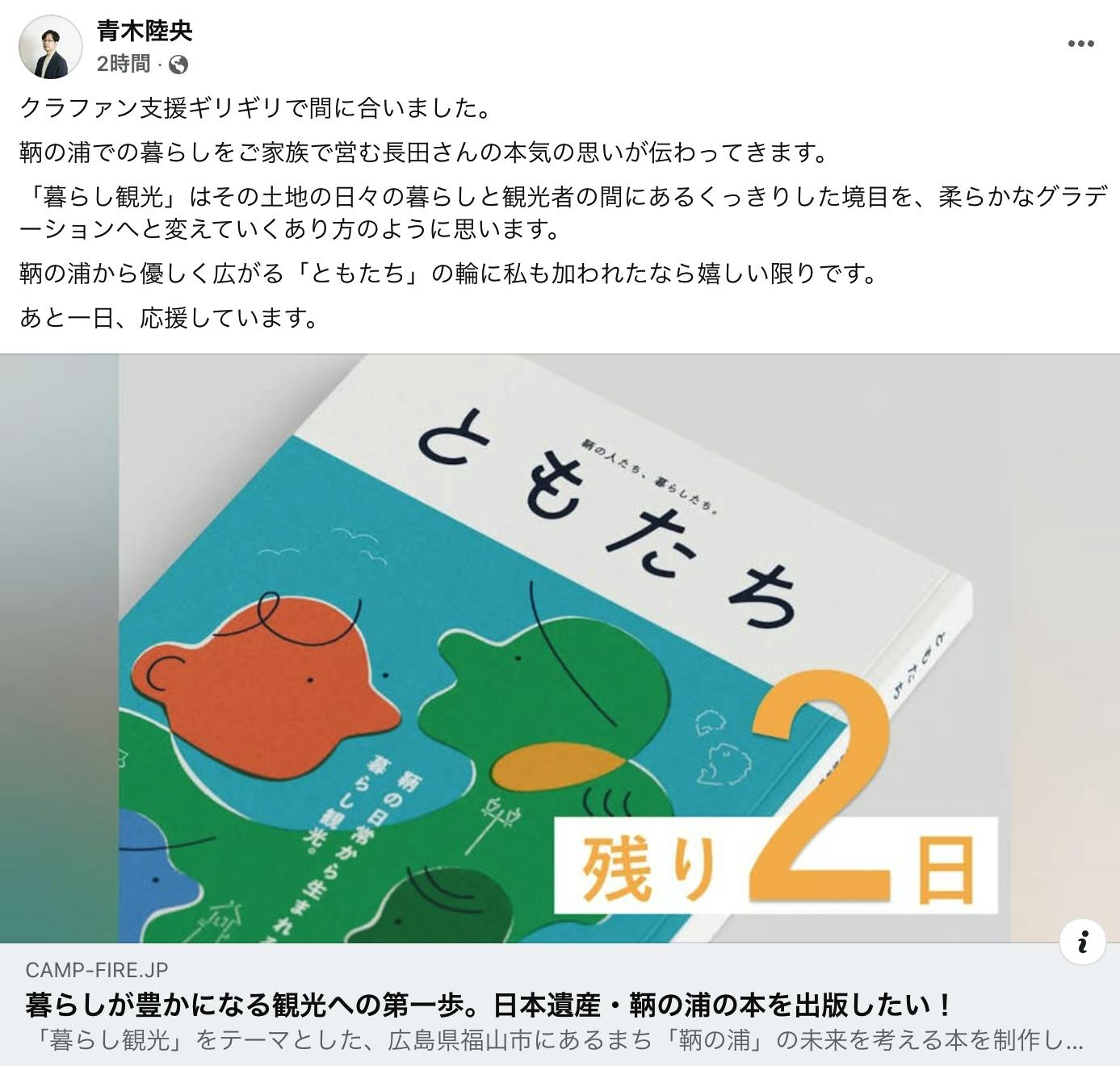 この数日間で多くの方にご支援をいただいていて、書いたブログを読んでくださっているのか、各SNSでプロジェクトページをシェアしてくれました。そこに添えられていた、僕らのプロジェクトに対して受け取った感覚・気持ちの言葉がとても沁みております。本当に嬉しい。ありがとうございます。