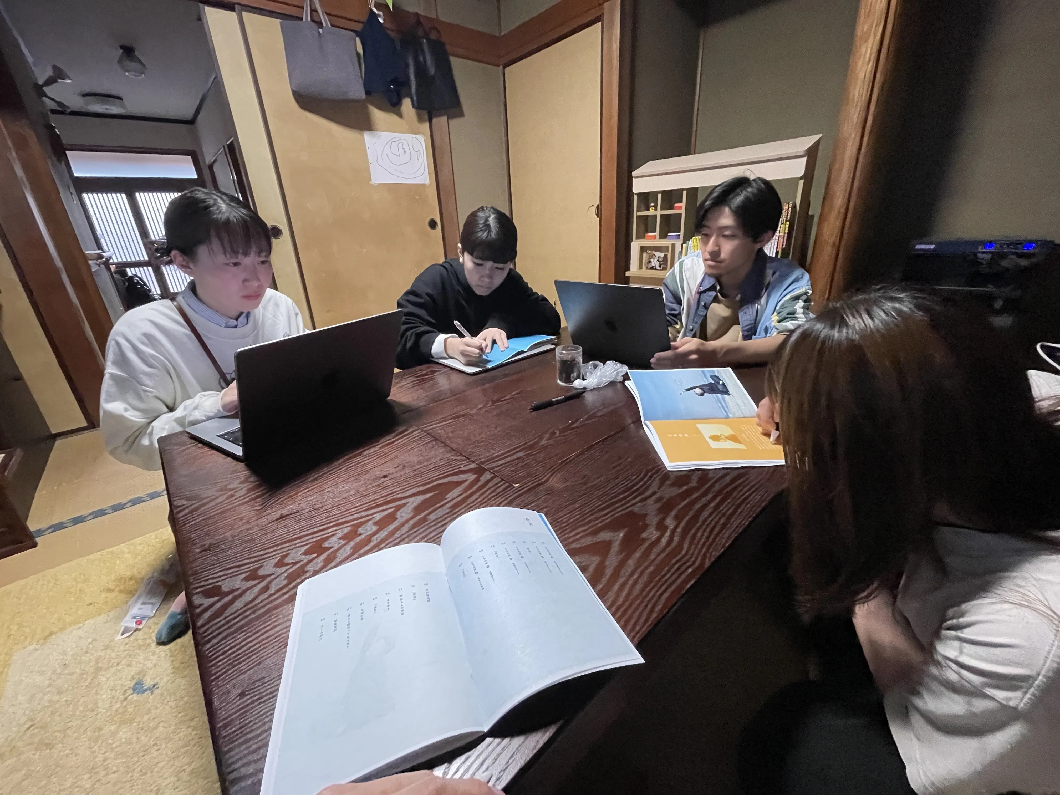 最近は、本づくりの最終段階まで進んでおります!デザインもすべて出揃いまして、その読み合わせや詳細のチェックをするために、今回の「ともたち」のデザイン・編集を手掛けてくれている ここちチームの皆さんが鞆の浦からやってきてくれました!(長野・熊本から!)