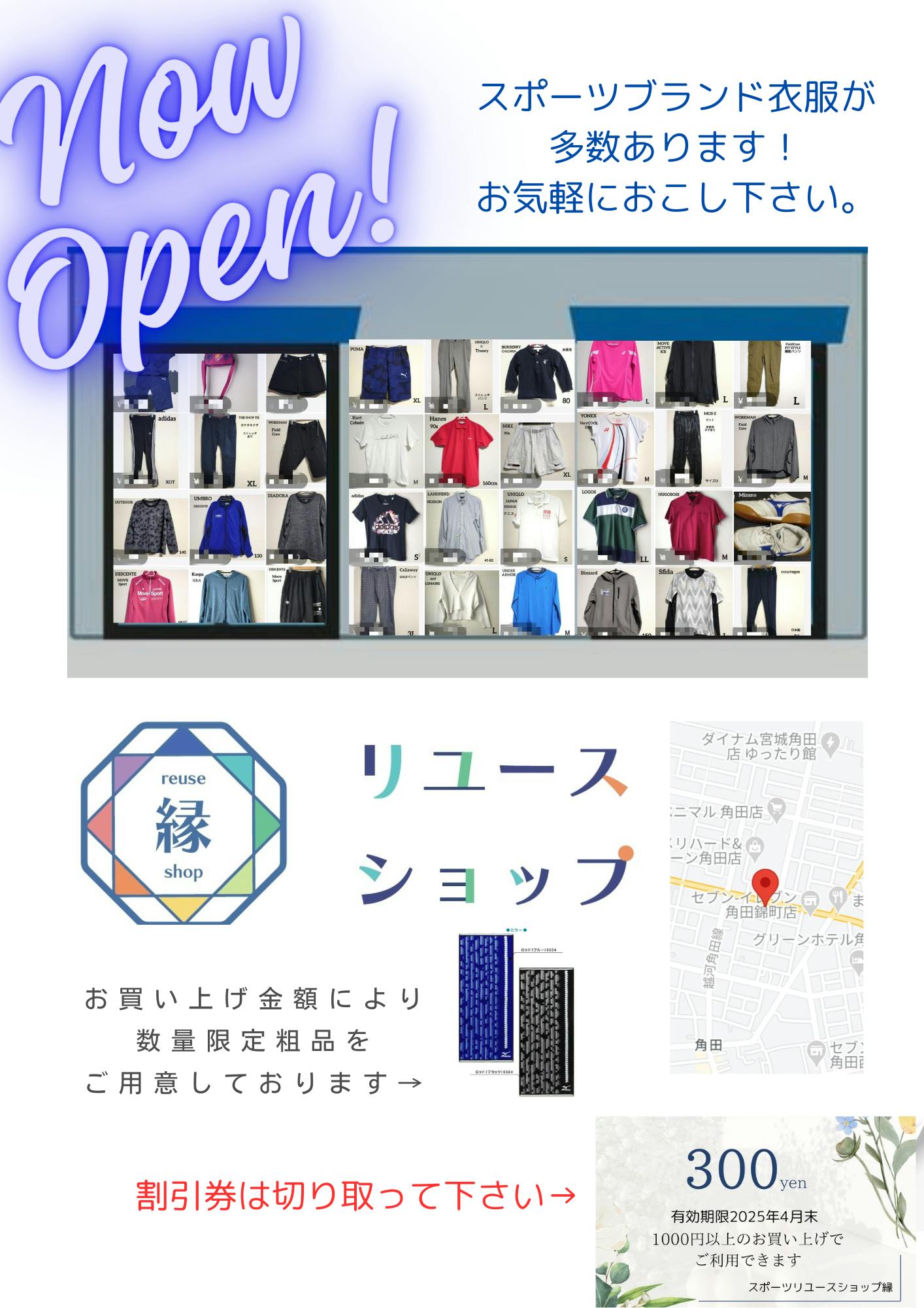 自分が中学高校はバドミントン部に所属していて、シューズやラケット、ガット、シャトルは消耗品でありウェアなどの費用も家計の負担になる事や、実際、私の子供達3人がそれぞれ別の部活動(サッカー、陸上、バドミントン)に所属しスポーツ衣服や消耗品がかなり家計の負担になった時期があります。その時期にリユース商品を購入できる店は少なかったのが残念です。私は、角田市にスポーツリユースショップをオープンさせ、地域の方々と共に楽しく健康に過ごせるようにと考えております。