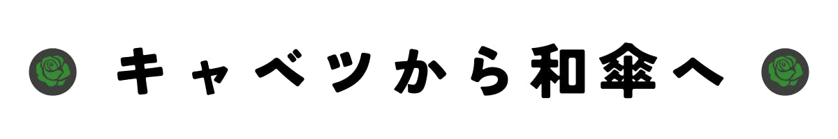 そこで、「根を絶すことなくキャベツ和傘が残りつづけてほしい」という願いを込めて、あえて土に根をつけたままの薔薇をモチーフに。また、美しい薔薇は手入れやトゲに常に気を付けなければいけないように、「日本伝統工芸品も繊細なものであるんだよ」というメッセージ性を込めた、そんなオリジナルステッカーを現在作成しております。