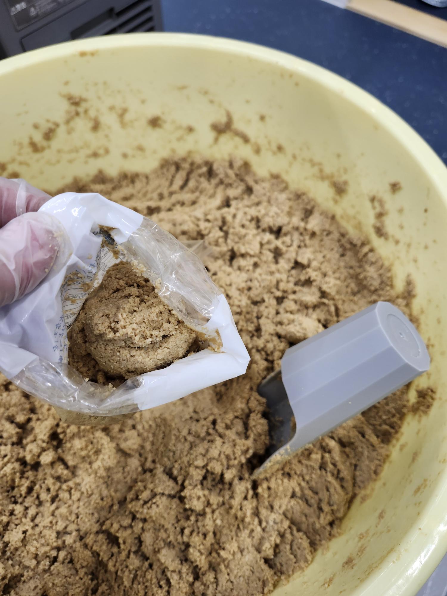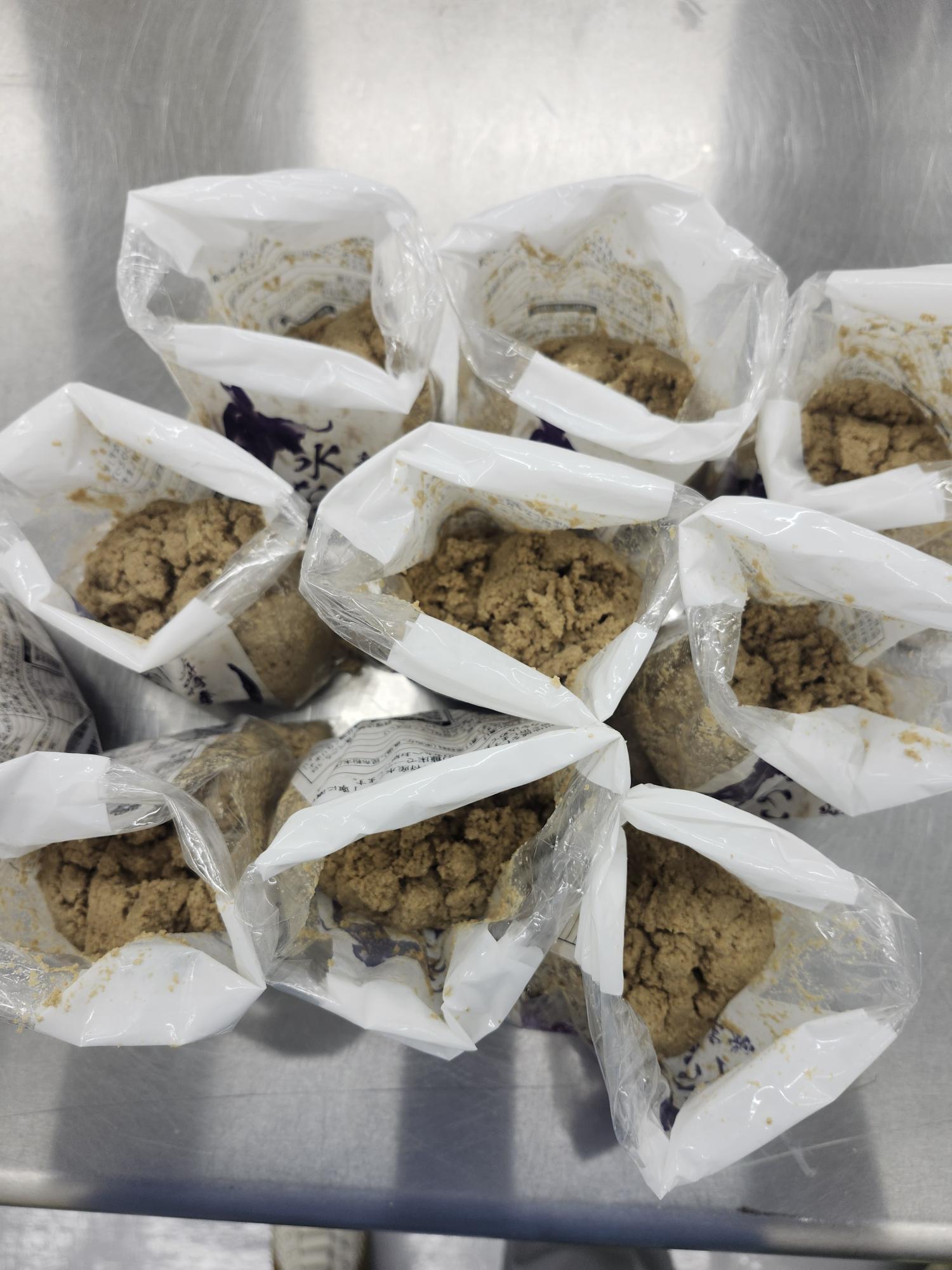 毎朝その日の気温や湿度を確認しながら調整している糠を袋に詰めていきます。