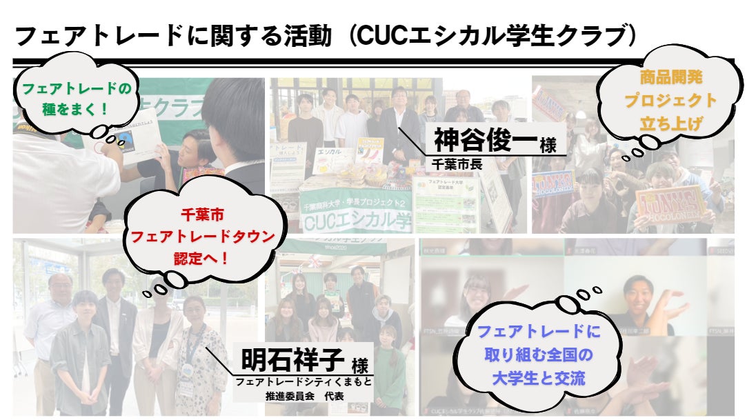 千葉商科大学は建学の精神、理念として「商業道徳」「まっとうな商い」を掲げており、フェアトレード(公正公平な取引)の理念と通じるものが多いといえるでしょう。私は、そんな"フェアトレード大学"千葉商科大学から新たな挑戦を行います!