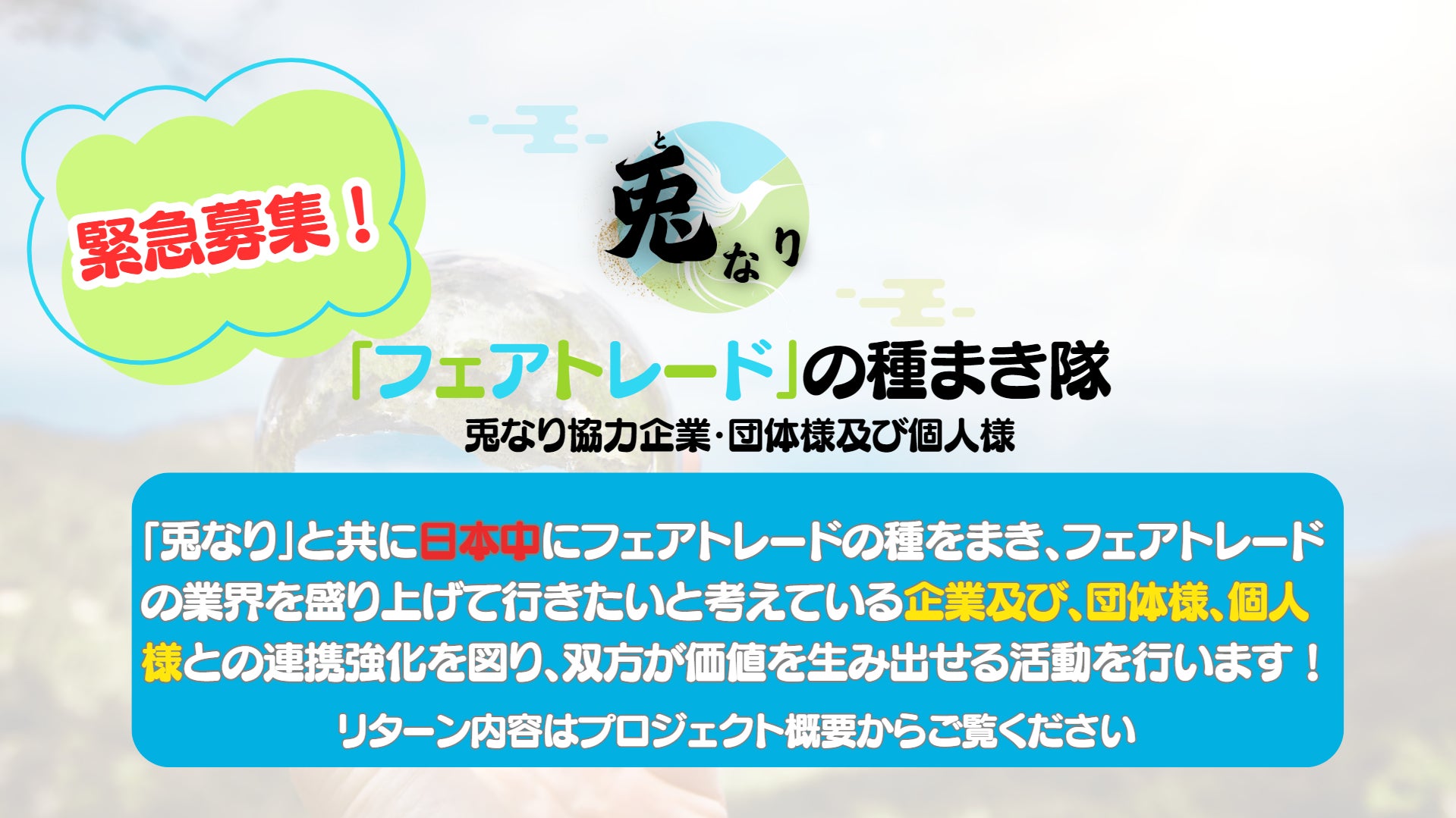 「兎なり」は、食を通じて継続的にフェアトレードを広める新たな挑戦です。