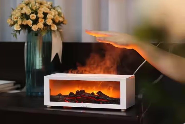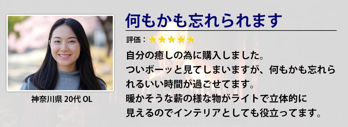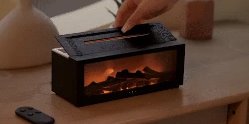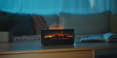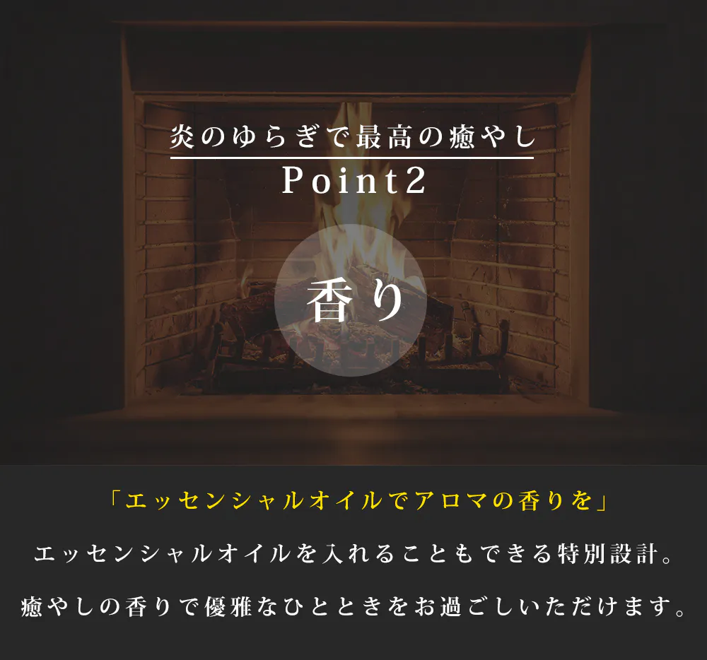 まるで本物の暖炉のような炎の揺らめきと、お好みの香りで癒される――。
