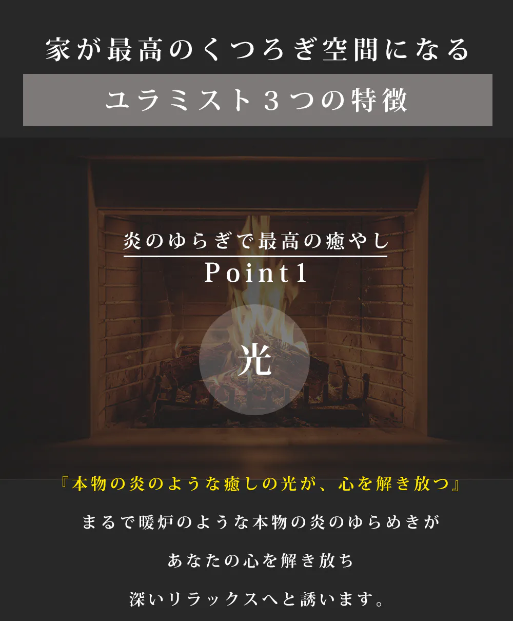 ユラミストの最新のLED技術によって、炎による自然の揺らぎを完璧に再現。
