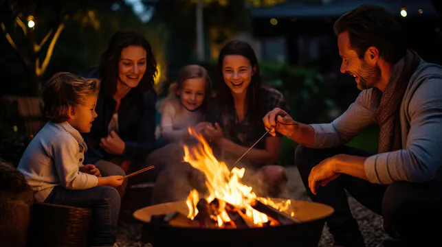 「炎の揺らぎが映える、リラックス焚き火効果。」