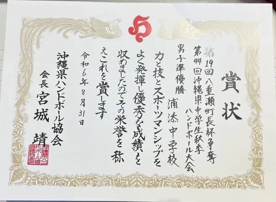 去る1月11〜13日に行われました「第21回浦添市長杯争奪・第52回沖縄県中学生新人ハンドボール大会」にて厳しい予選を戦い、3位という成績を勝ち取り、令和7年3月21日〜23日まで開催される「第37回九州中学生選抜ハンドボール大会」(福岡県)への出場権を得る事ができました!!