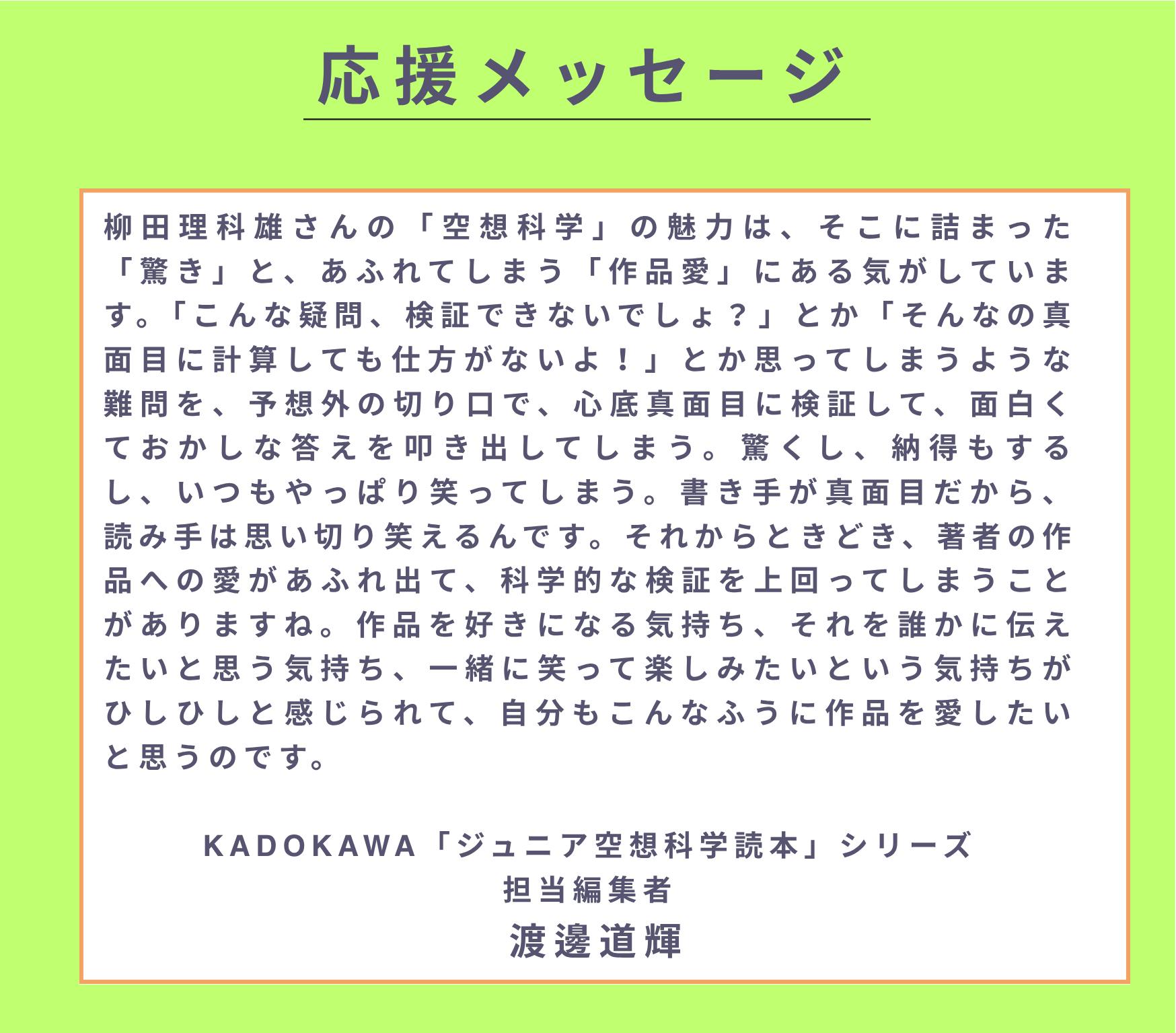 KADOKAWA『ジュニア空想科学読本』シリーズの担当編集者の渡邊道輝さんから、応援メッセージをいただきました。