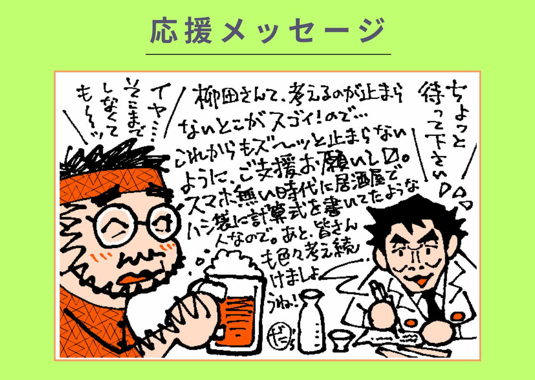 ハシ袋に計算式を書いている柳田さんをイラストにしてくださっています。