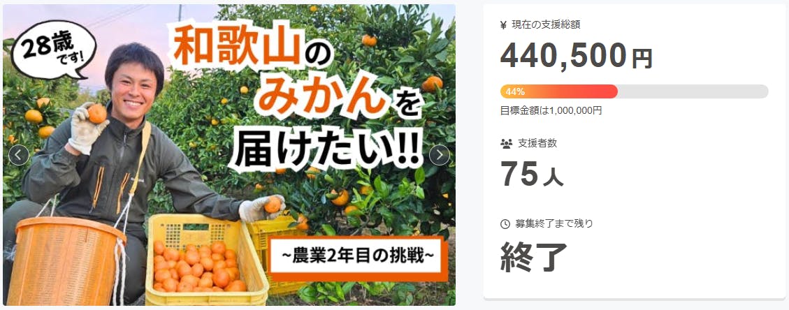 以前、和歌山県産みかんの販売を目的としたクラウドファンディングを実施させていただき、多くの方々にご支援をいただきました。