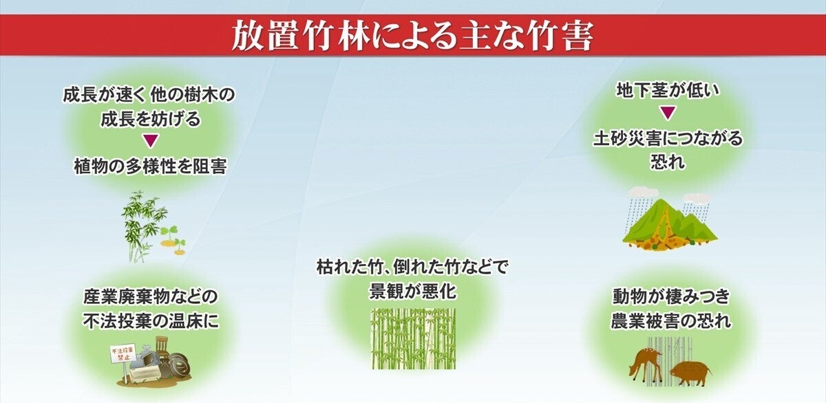 現在、地方では放置された竹林が大きな問題となっています。
