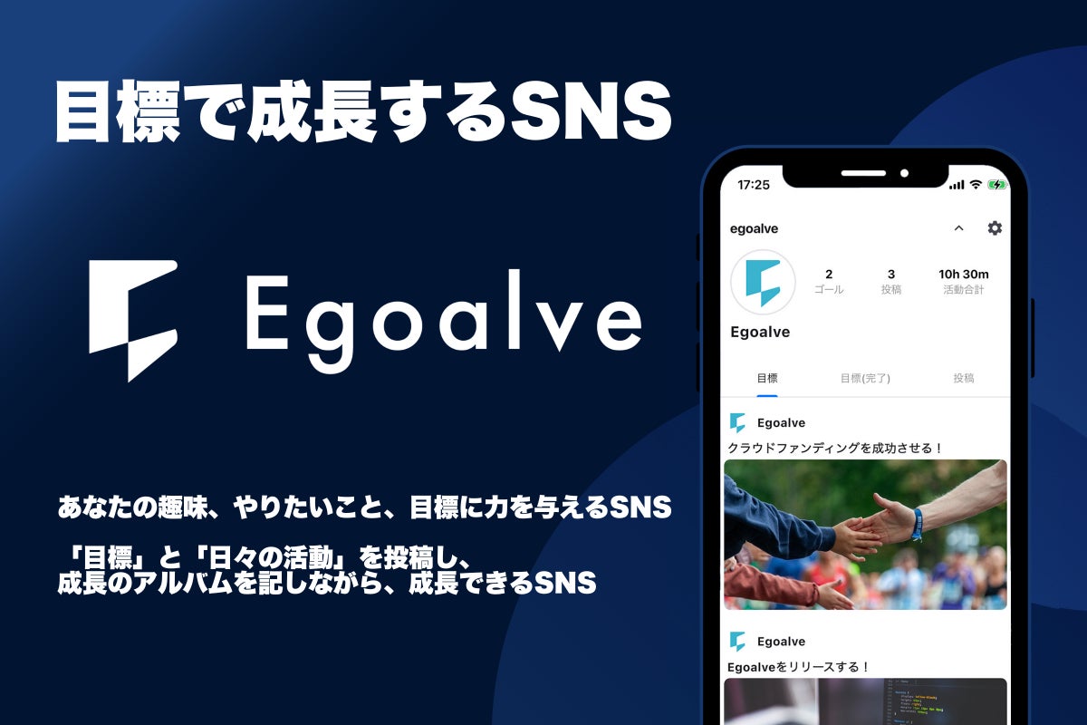 私たちは「目標」にフォーカスしたSNS「Egoalve」を開発しているSNSスタートアップです。