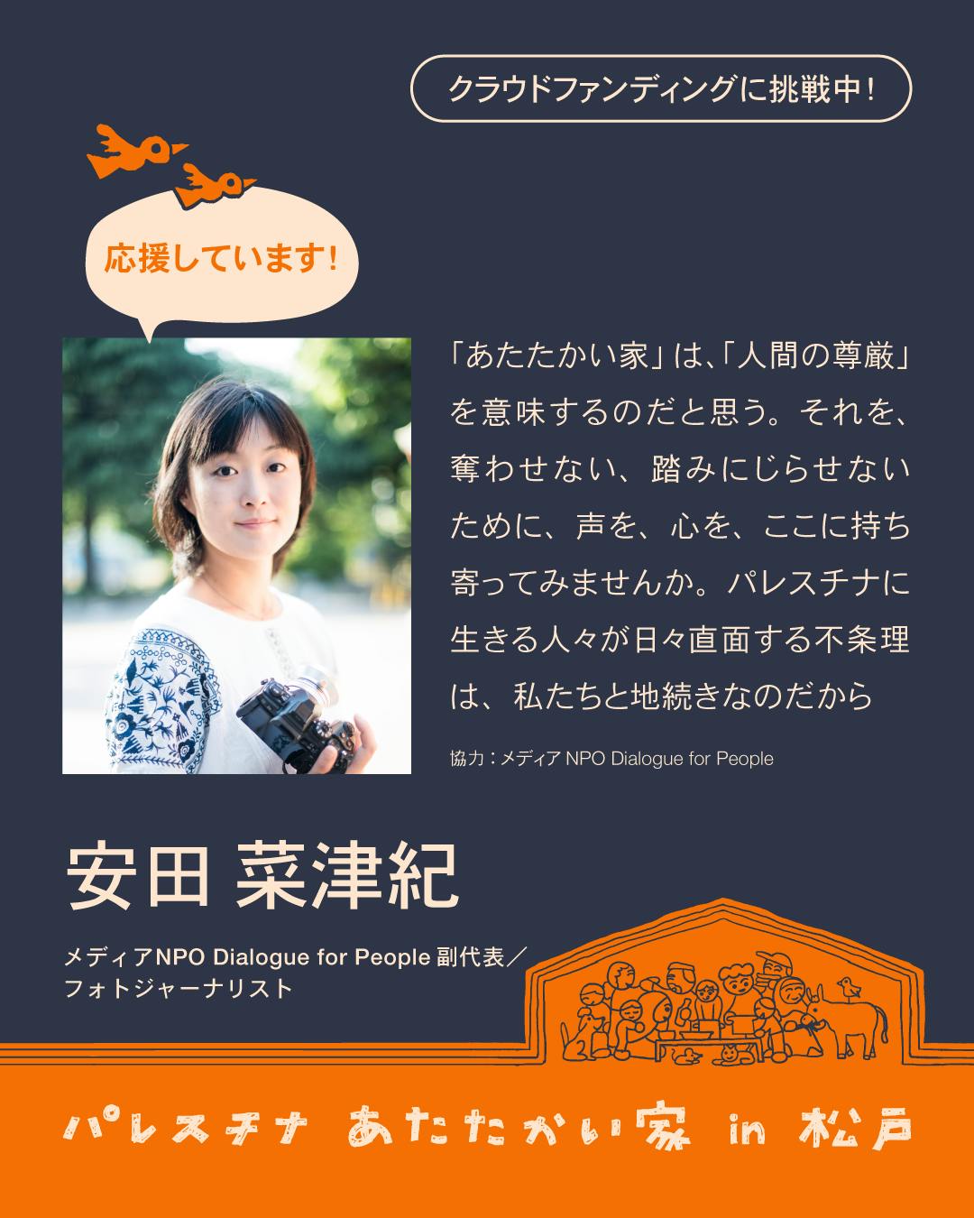 本日はフォトジャーナリストの安田菜津紀 様よりいただいた応援メッセージを紹介します。