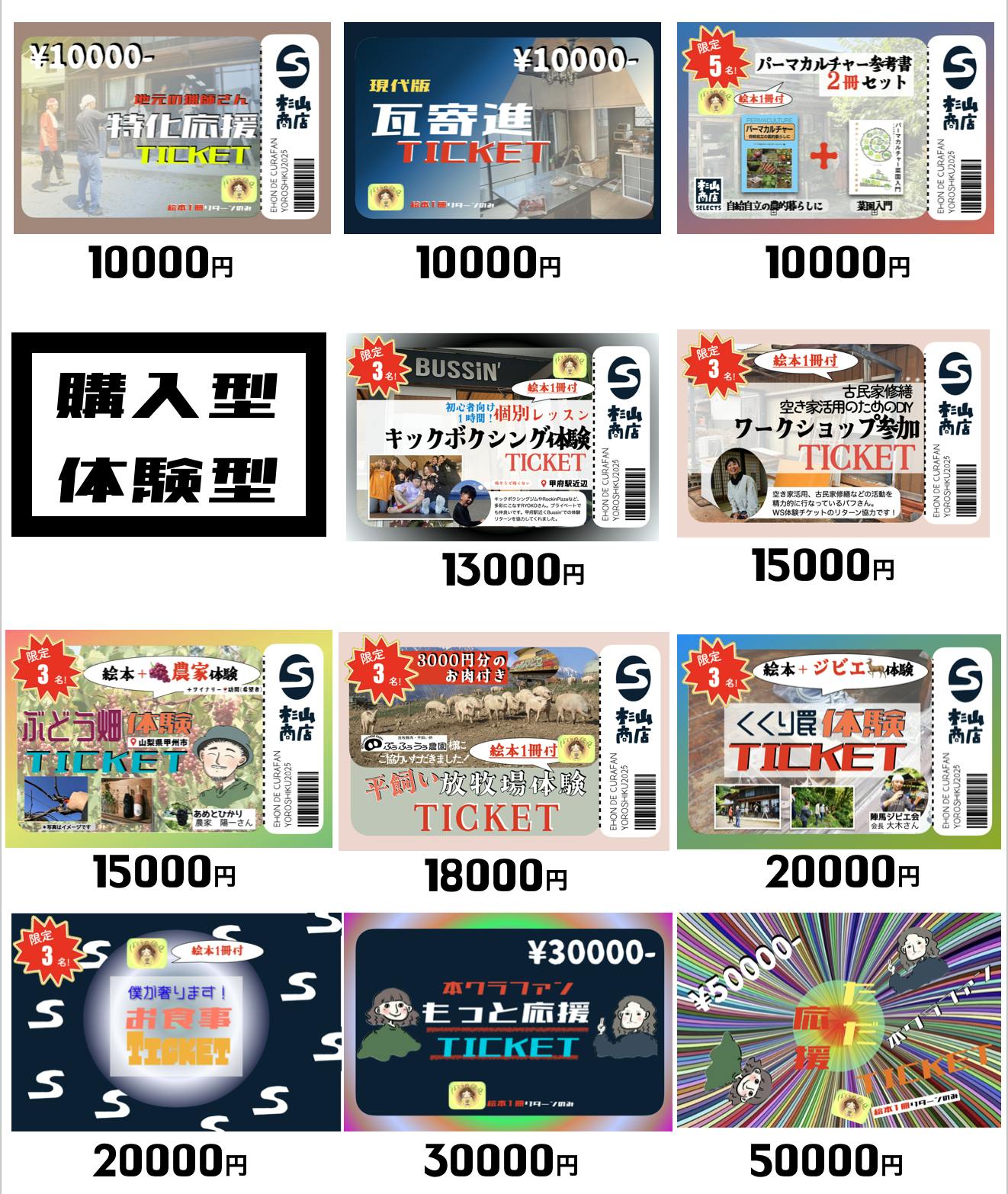 絵本作りと同時並行で地域の活動やプレイヤーの方々(狩猟のわな体験、平飼い養豚場、古民家修繕、地元のジビエペットフード、パーマカルチャーの本、キックボクシング、、、)の支援も行えたらと思い、支援金枠で様々な方のリターン(という名の応援)を揃えました。