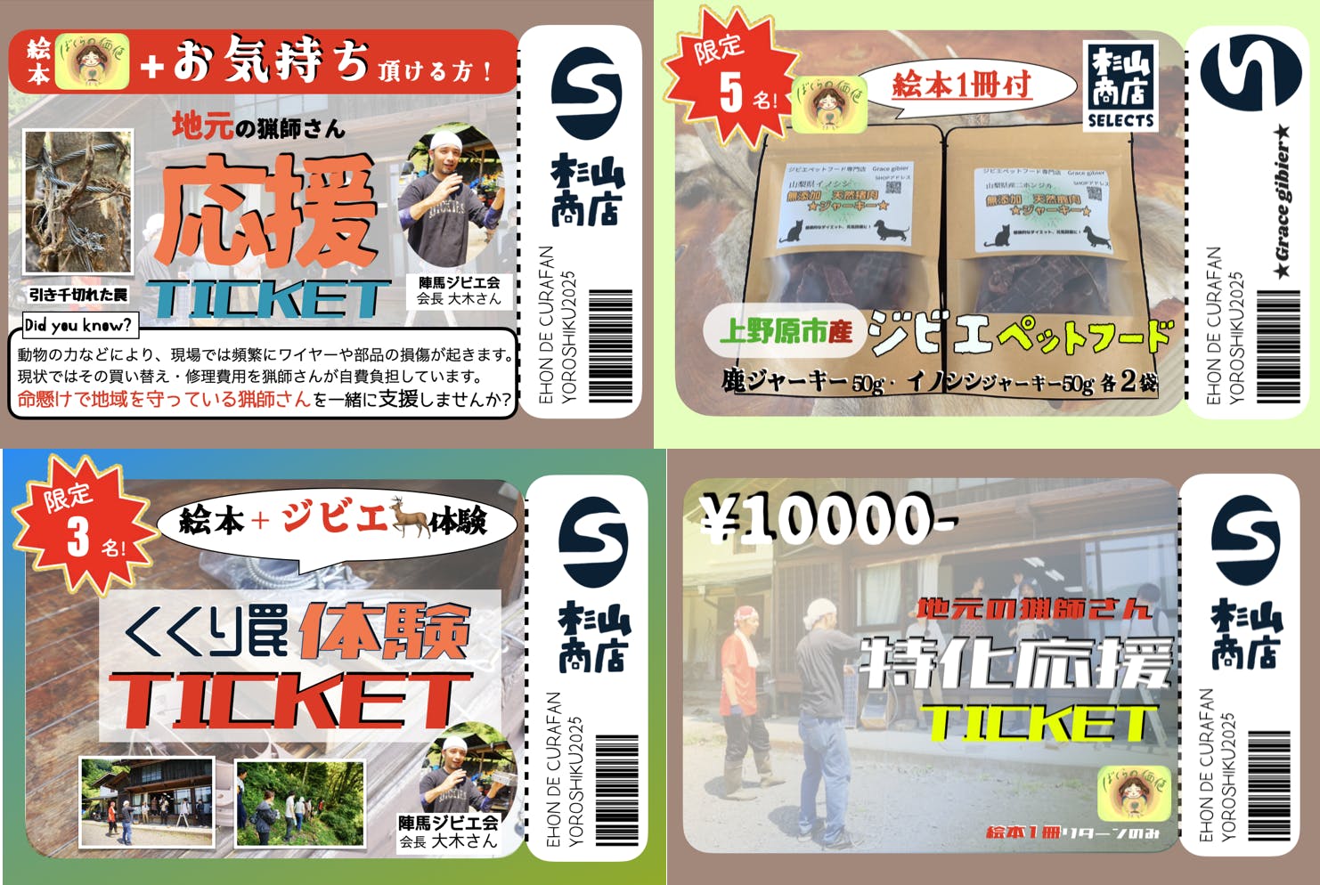 そういう想いと、猟師さんを応援したいという思いで5000円、10000円、20000円の猟師さん関連のリターンを出させて頂いています。