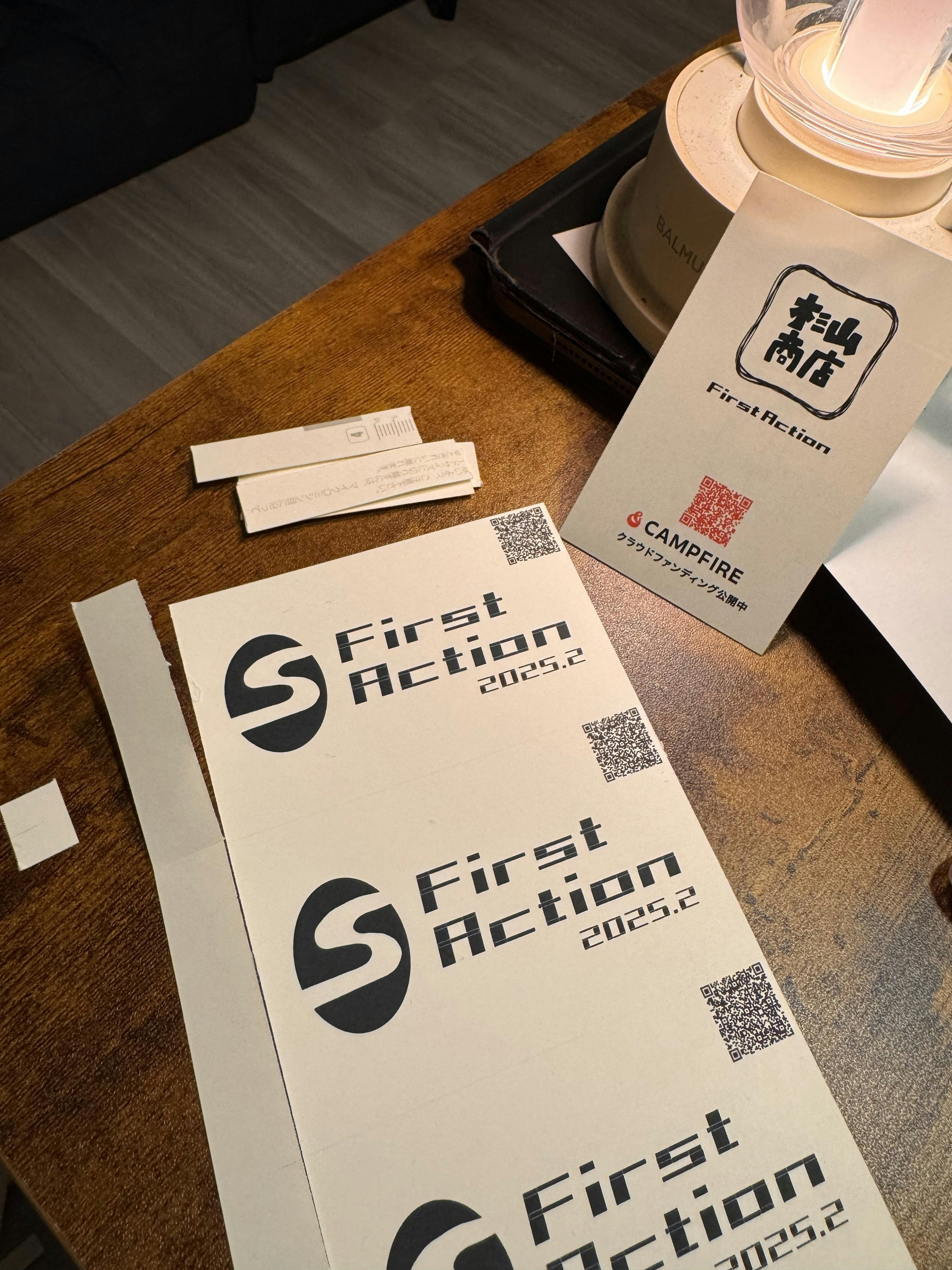 ちなみに、フライヤーは和紙、僕の名刺は藁から作られています。First Actionというのは個人的に結構気に入っている杉山商店の第一歩目、という意味です。