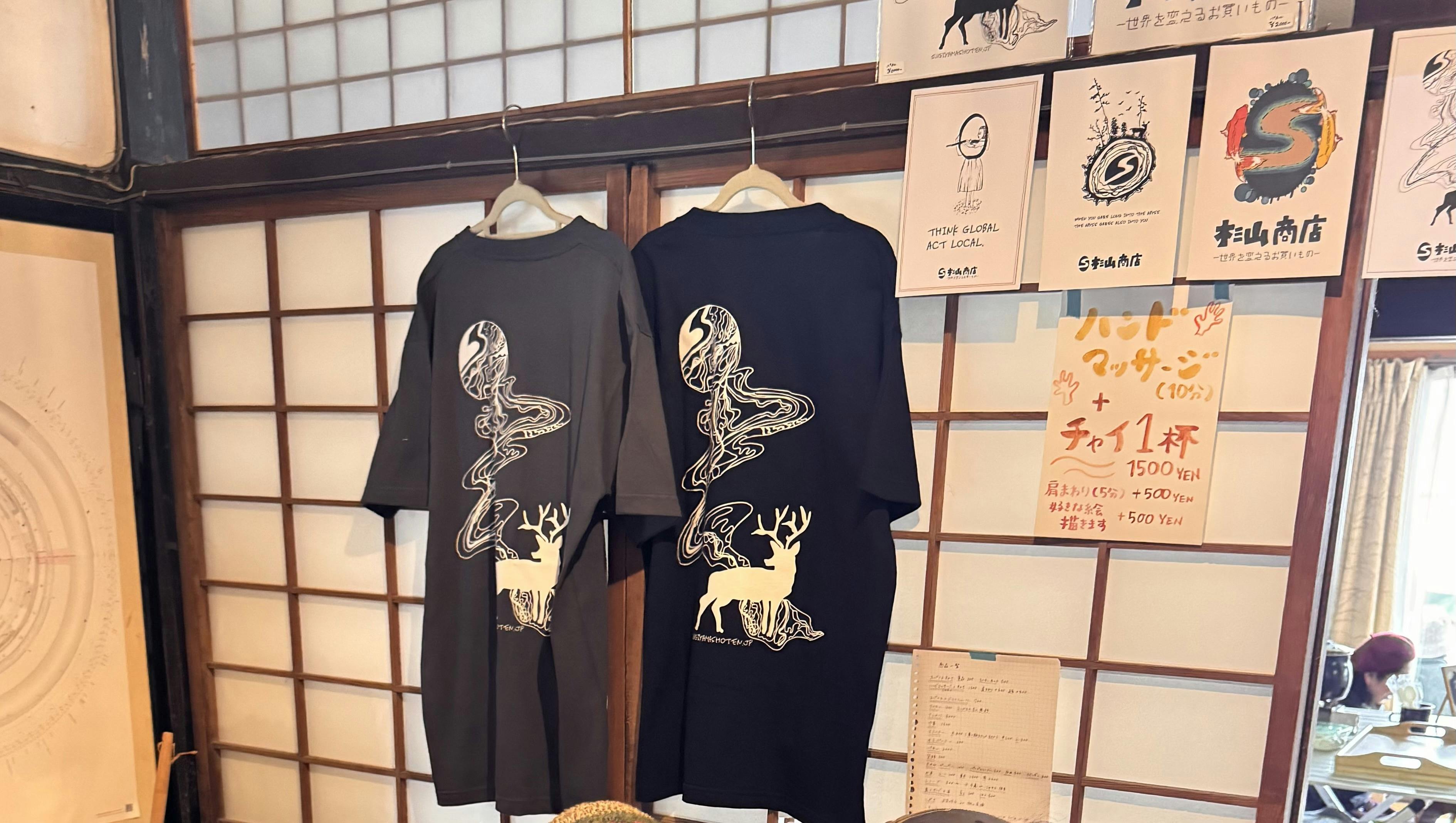 杉山商店オリジナルTシャツ(ゆうちゃん)、オリジナルデザインA5ポスター(ゆうちゃん、もくれん)、オリジナルパネル(ゆうちゃん)