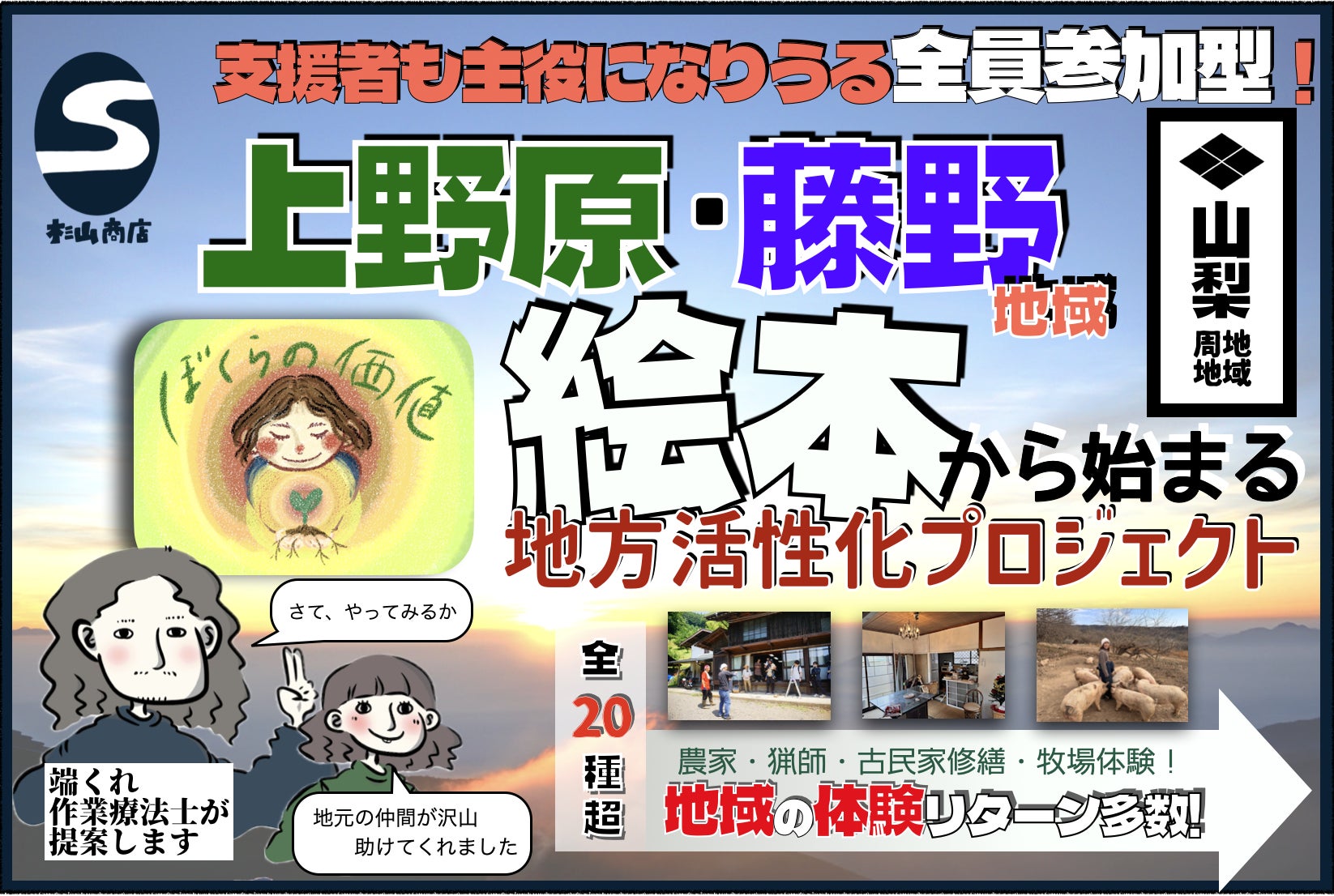 題して、支援者も主役になりうる全員参加型!上野原・藤野、山梨地域 「絵本から始まる地方活性化プロジェクト」です!!
